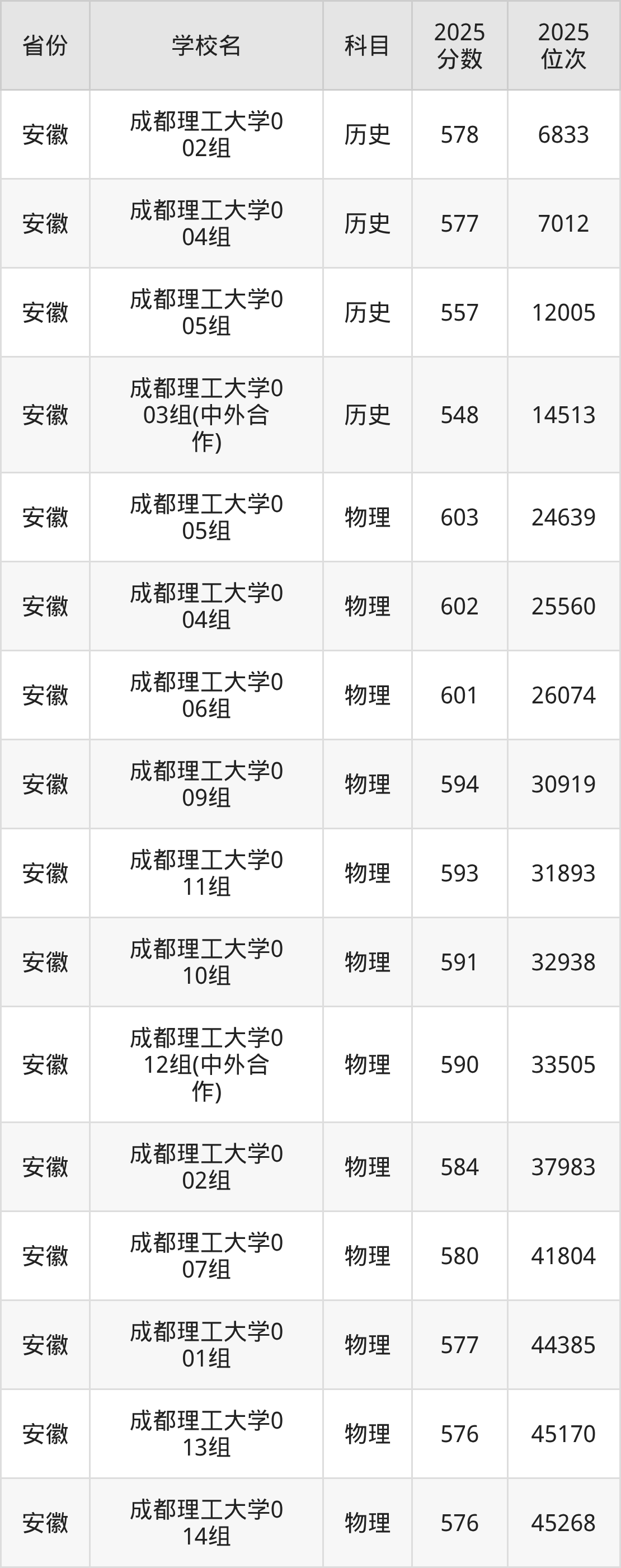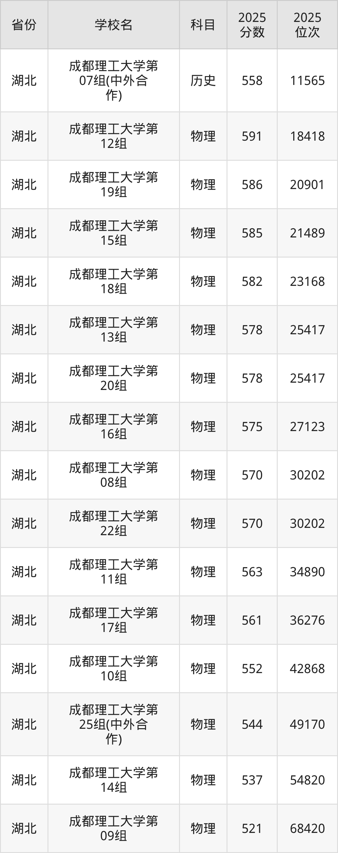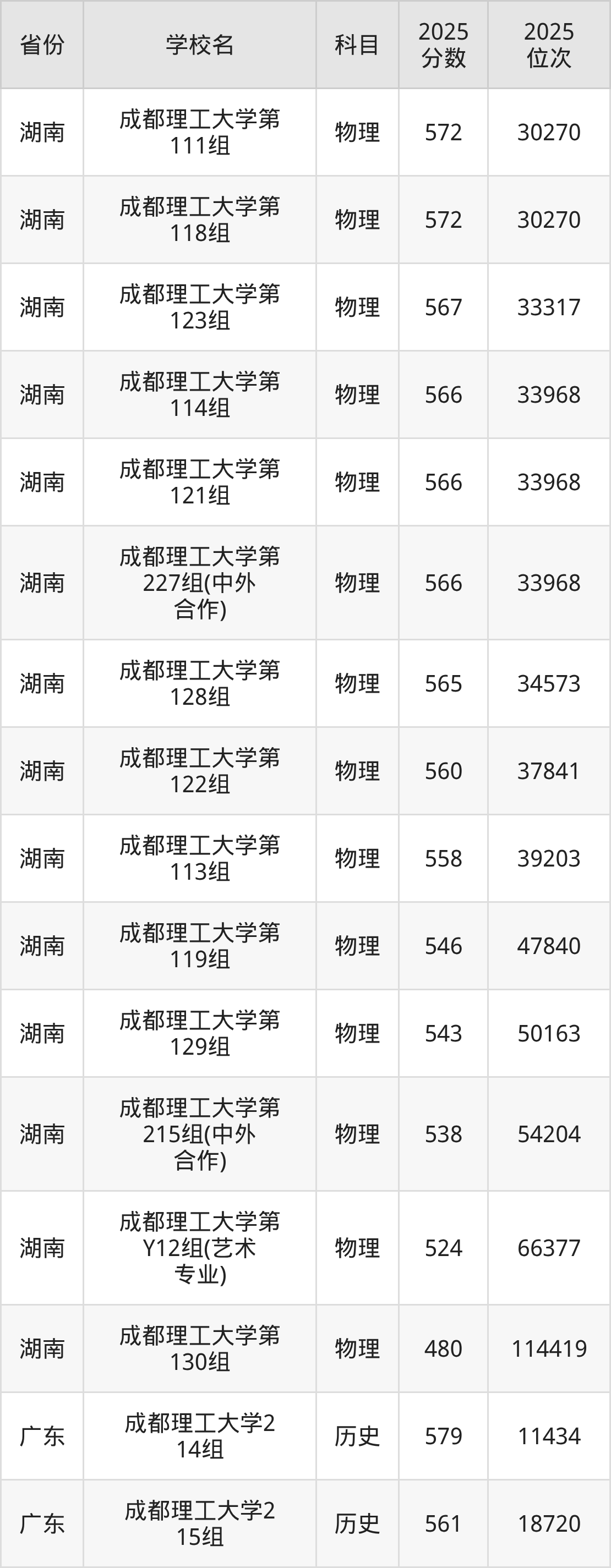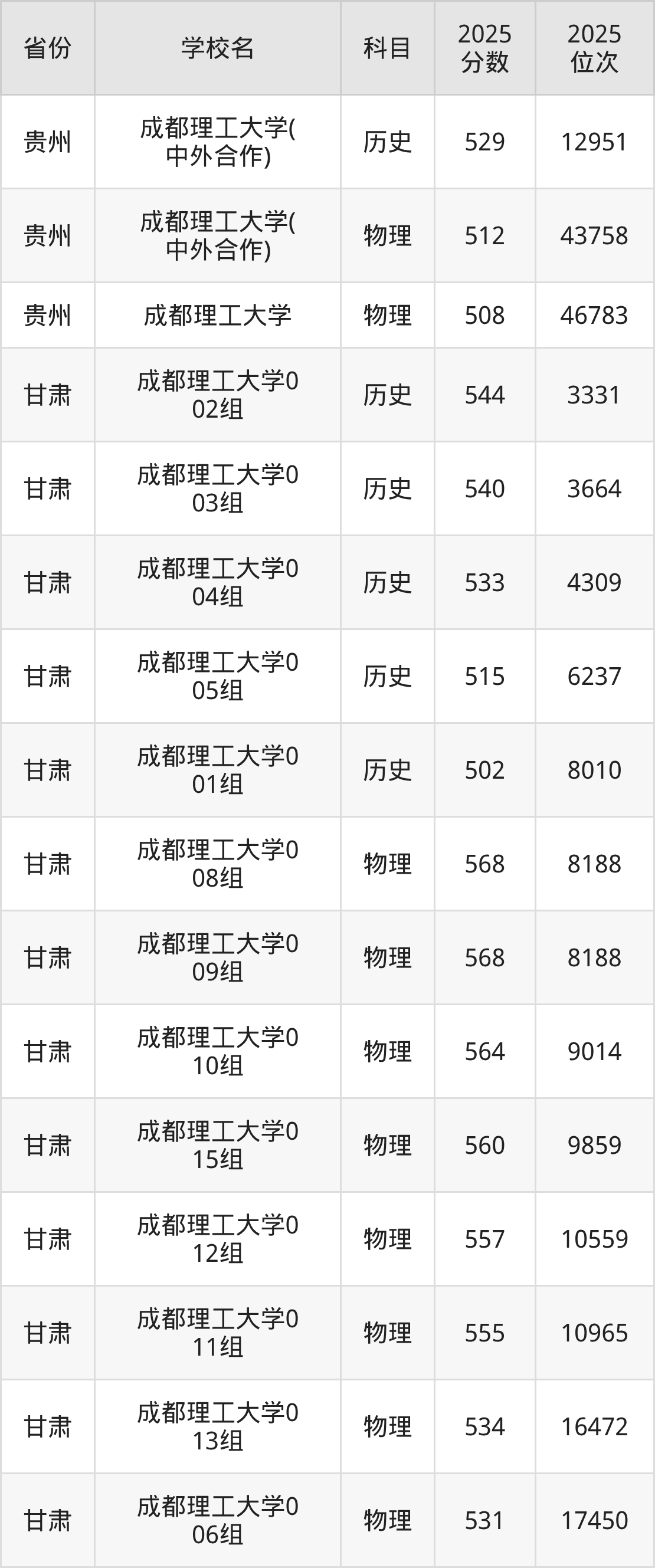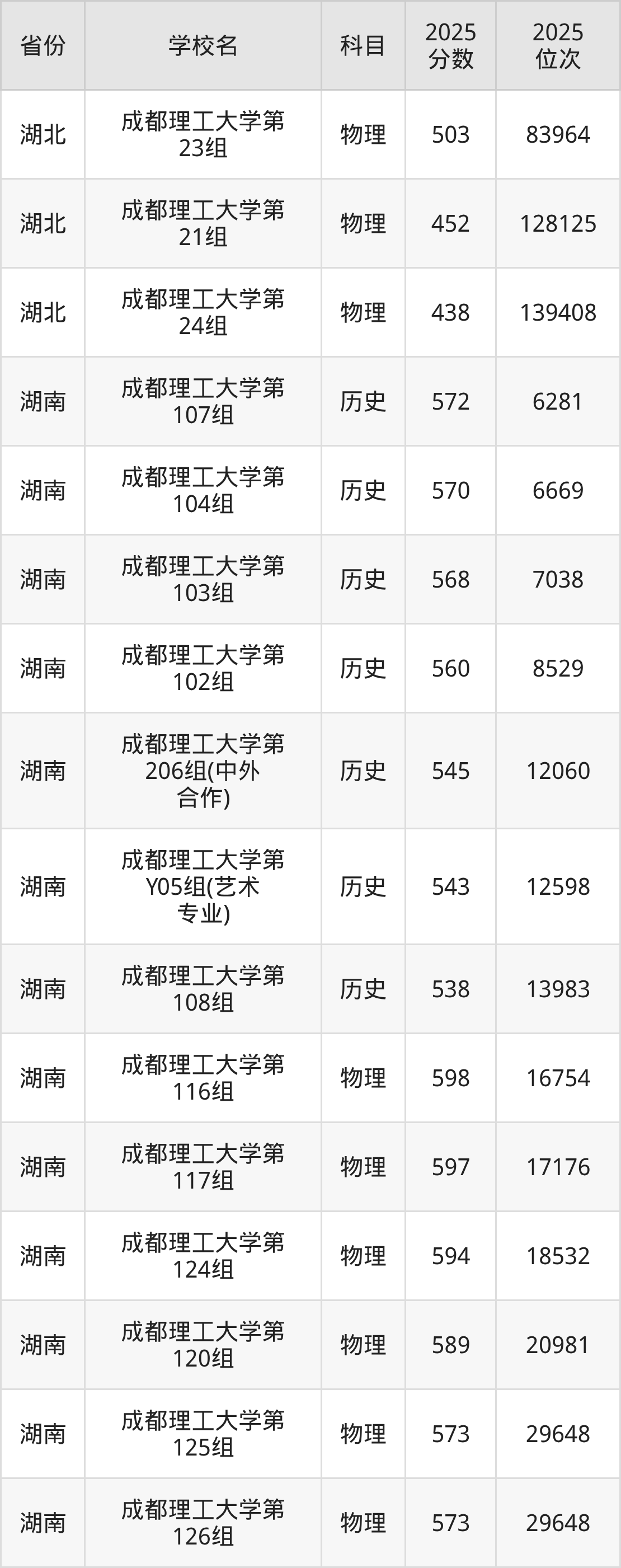 | 成都理工大学专 业组110 | 历史 | 577 | 10008 |