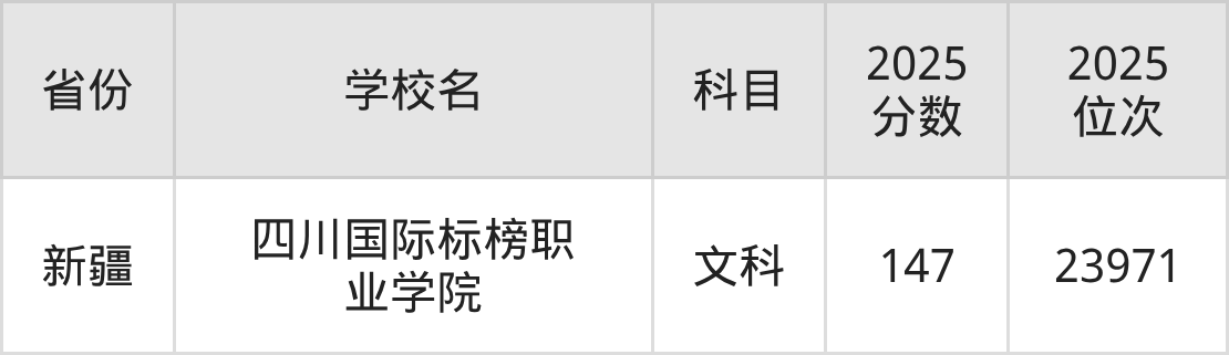 | 学校名 | 科目 | 2025 分数 | 2025 位次 |