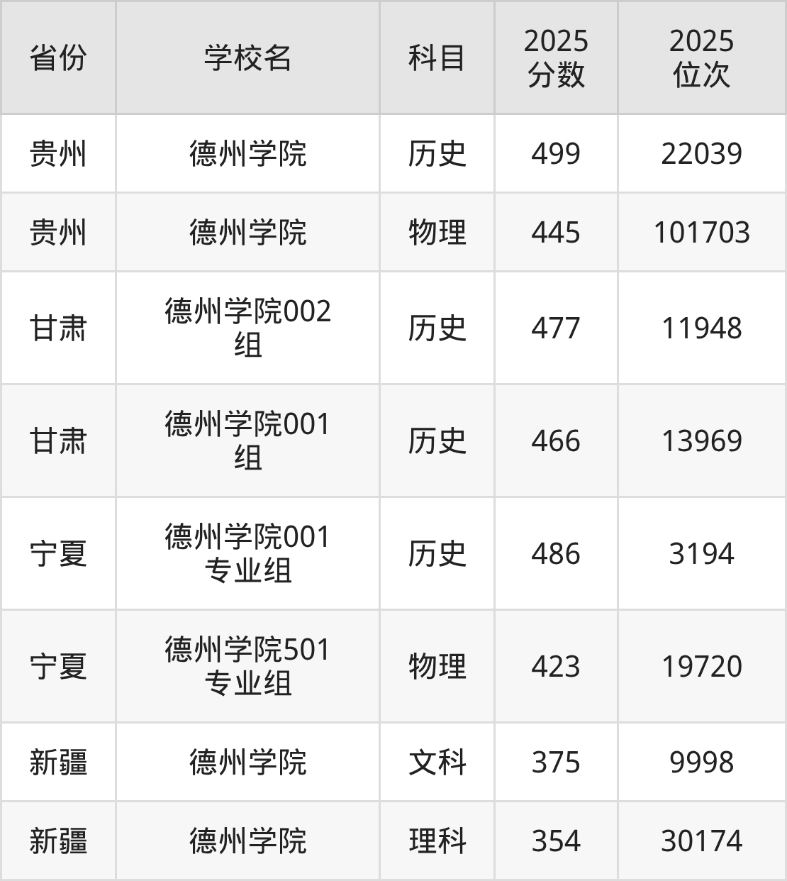 2025年德州学院在省内,最低分是401分、对应位次是420771名。