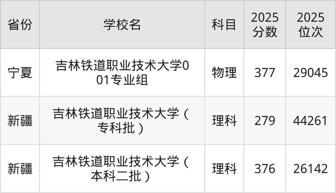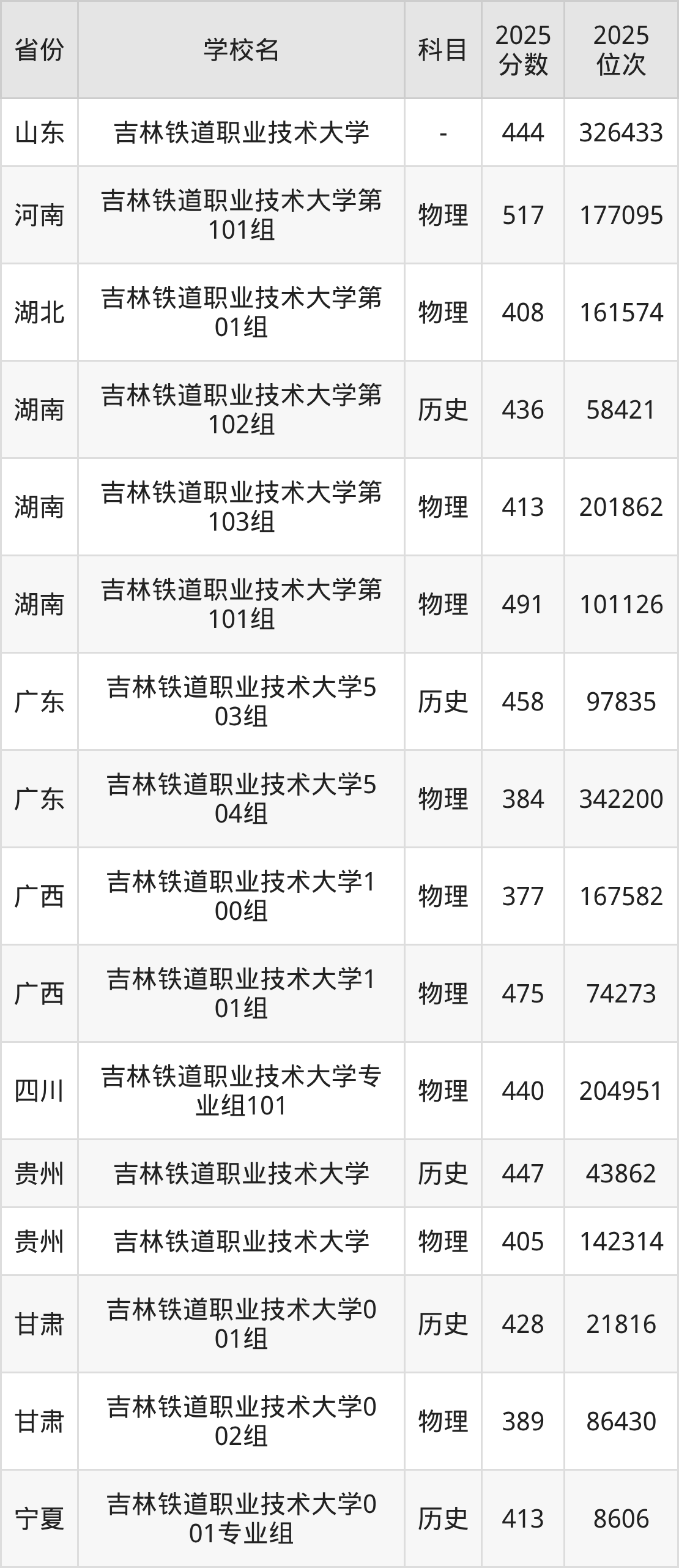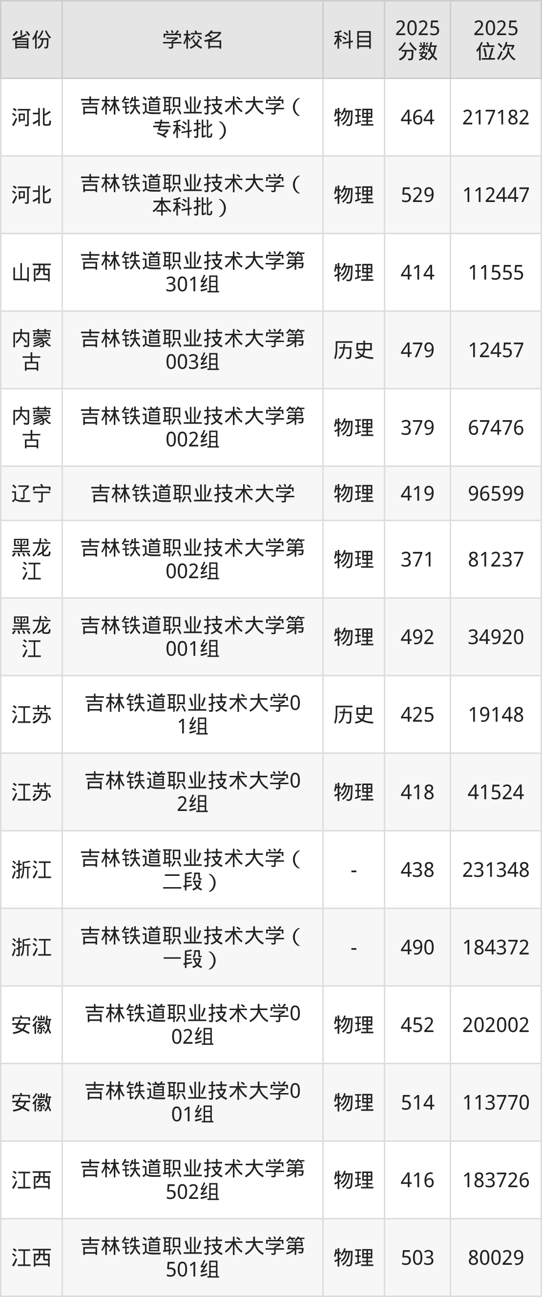 下面是吉林铁道职业技术大学2025年录取分数线各省汇总,一起来了解下吧。