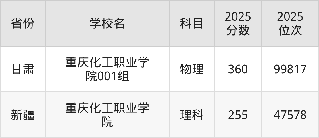下面是重庆化工职业学院2025年录取分数线各省汇总,一起来了解下吧。
