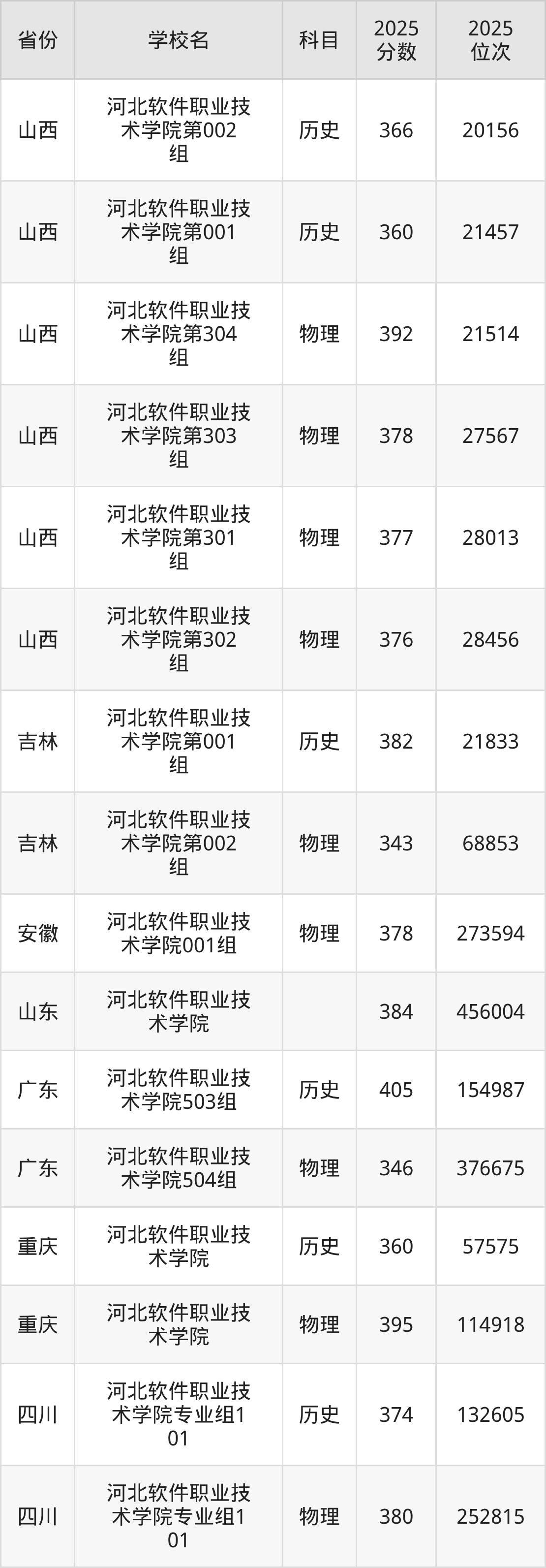 下面是河北软件职业技术学院2025年录取分数线各省汇总,一起来了解下吧。