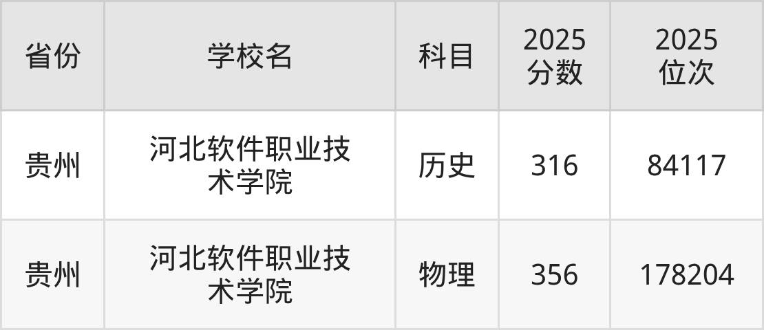 2025年河北软件职业技术学院在省内分历史物理科目类录取,其中历史类最低分是378分、对应位次是139046名;物理类最低分是377分,对应位次是310139名。