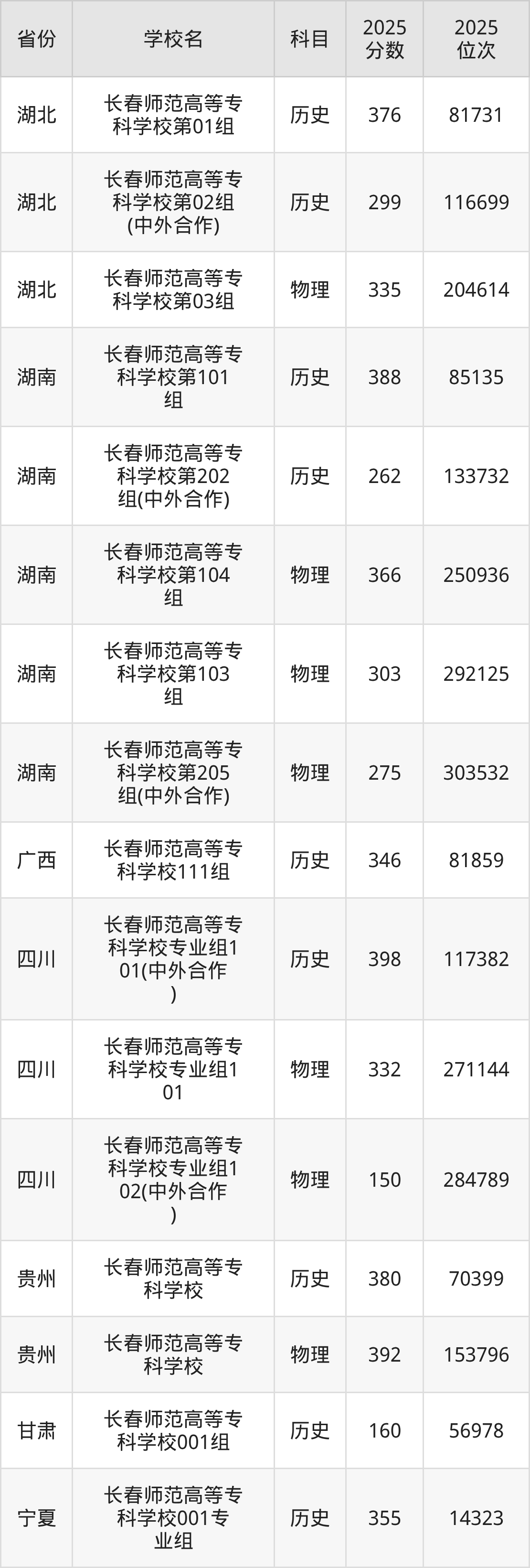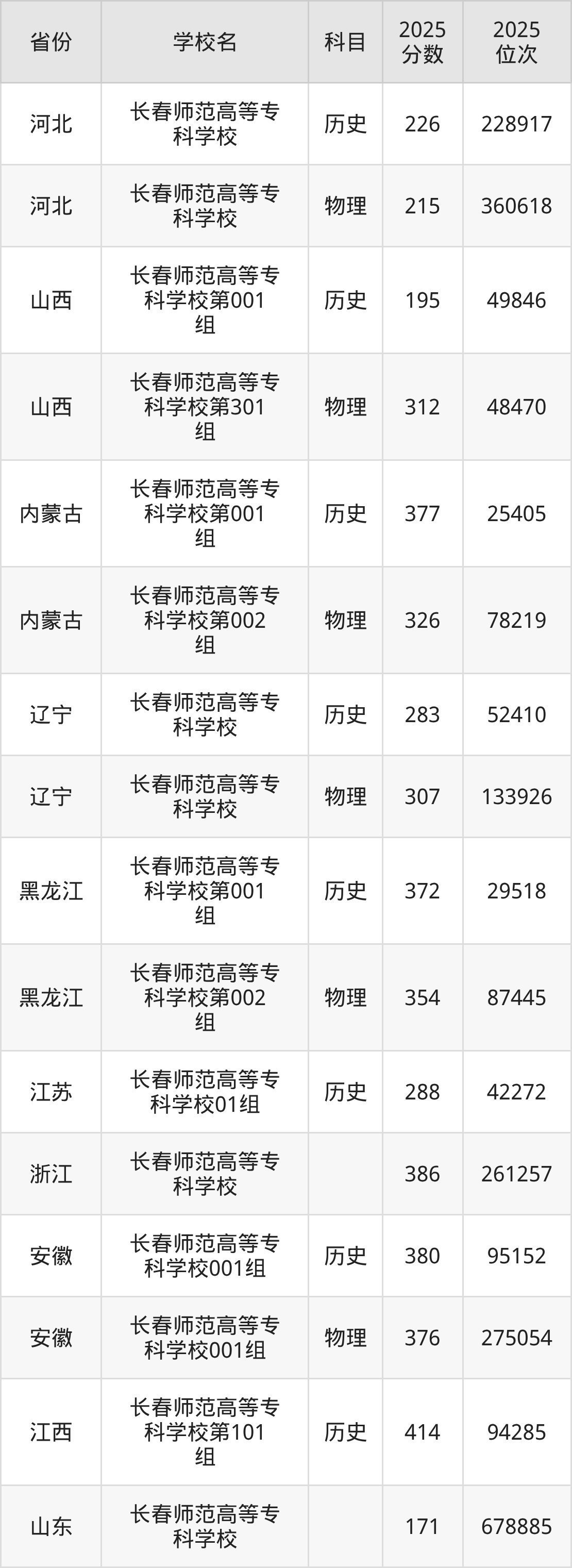 下面是长春师范高等专科学校2025年录取分数线各省汇总,一起来了解下吧。
