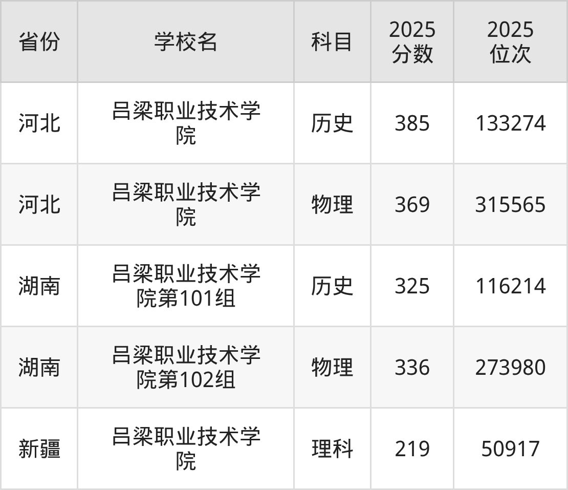 下面是吕梁职业技术学院2025年录取分数线各省汇总,一起来了解下吧。