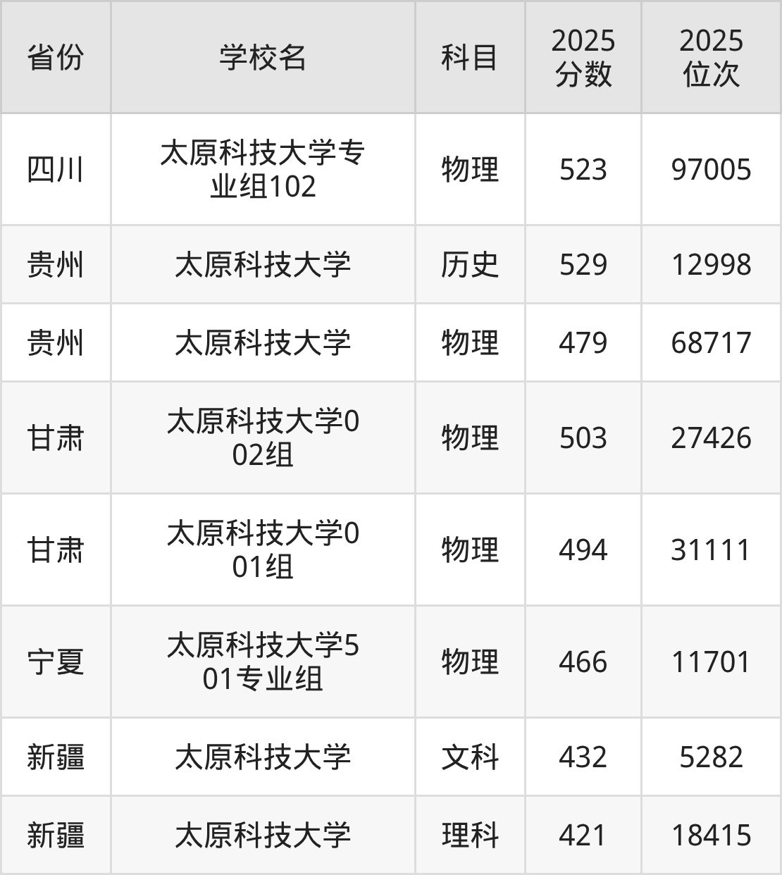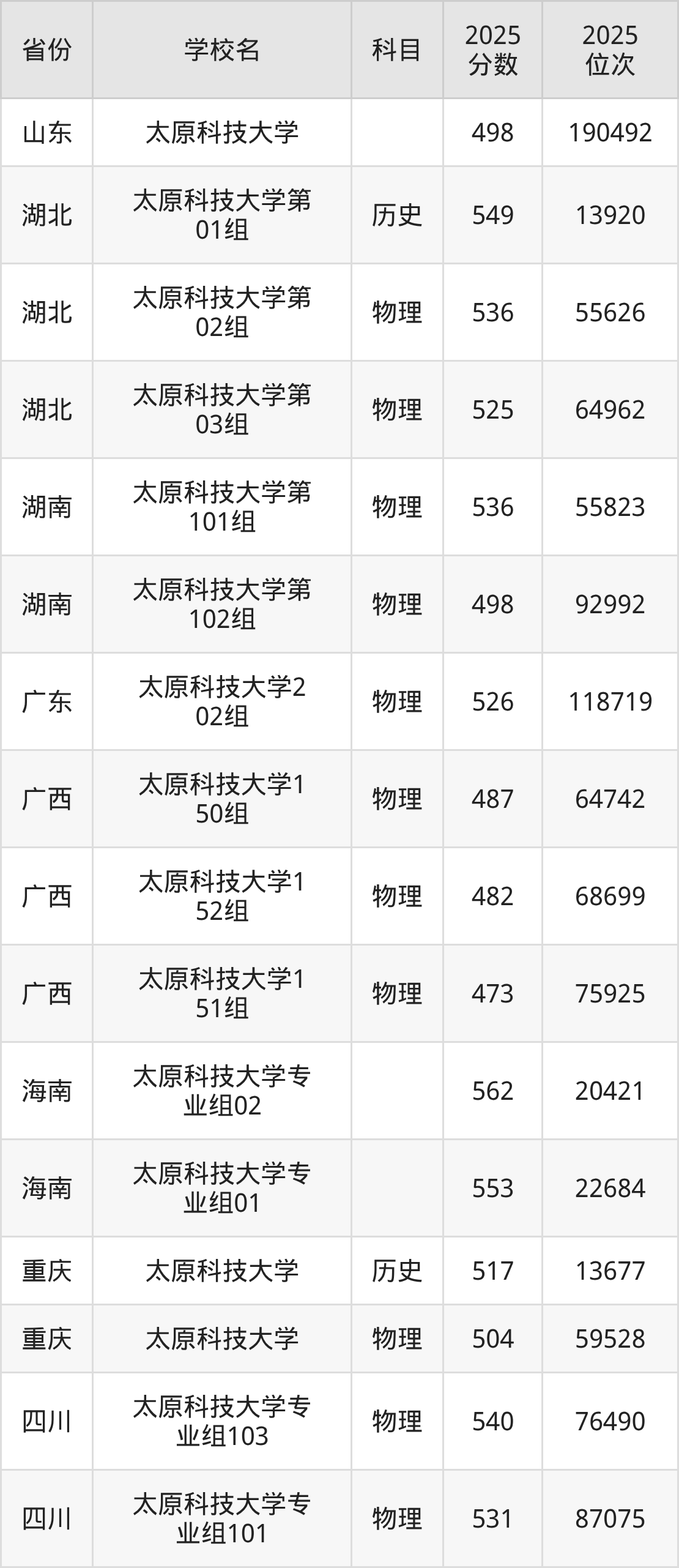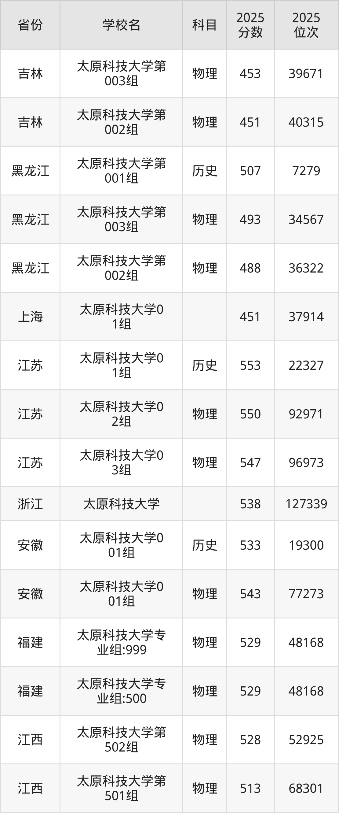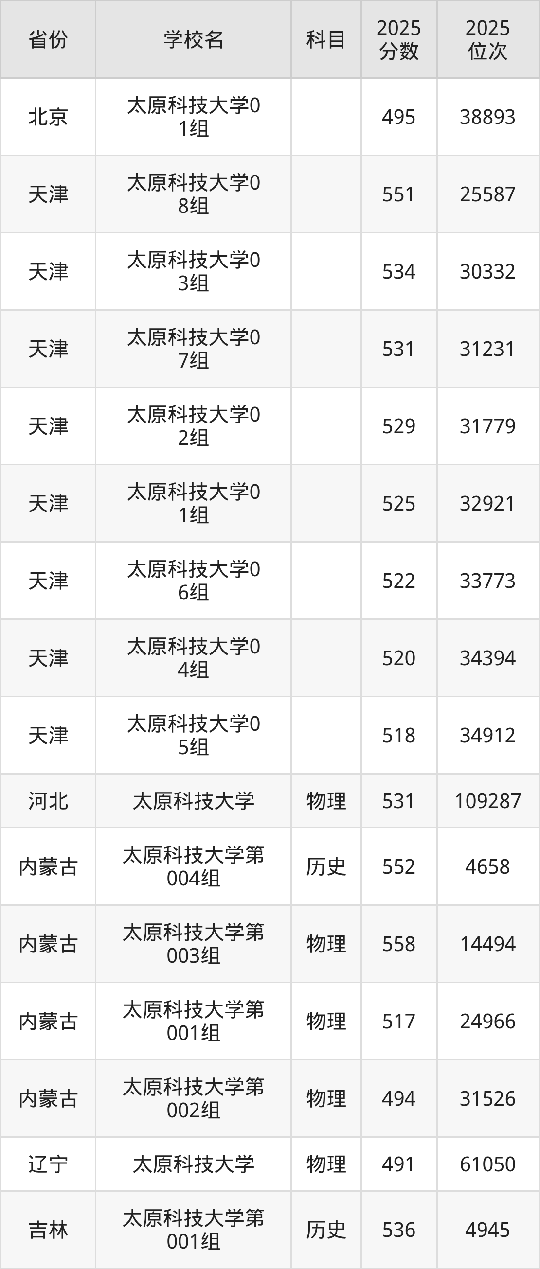 下面是太原科技大学2025年录取分数线各省汇总,一起来了解下吧。