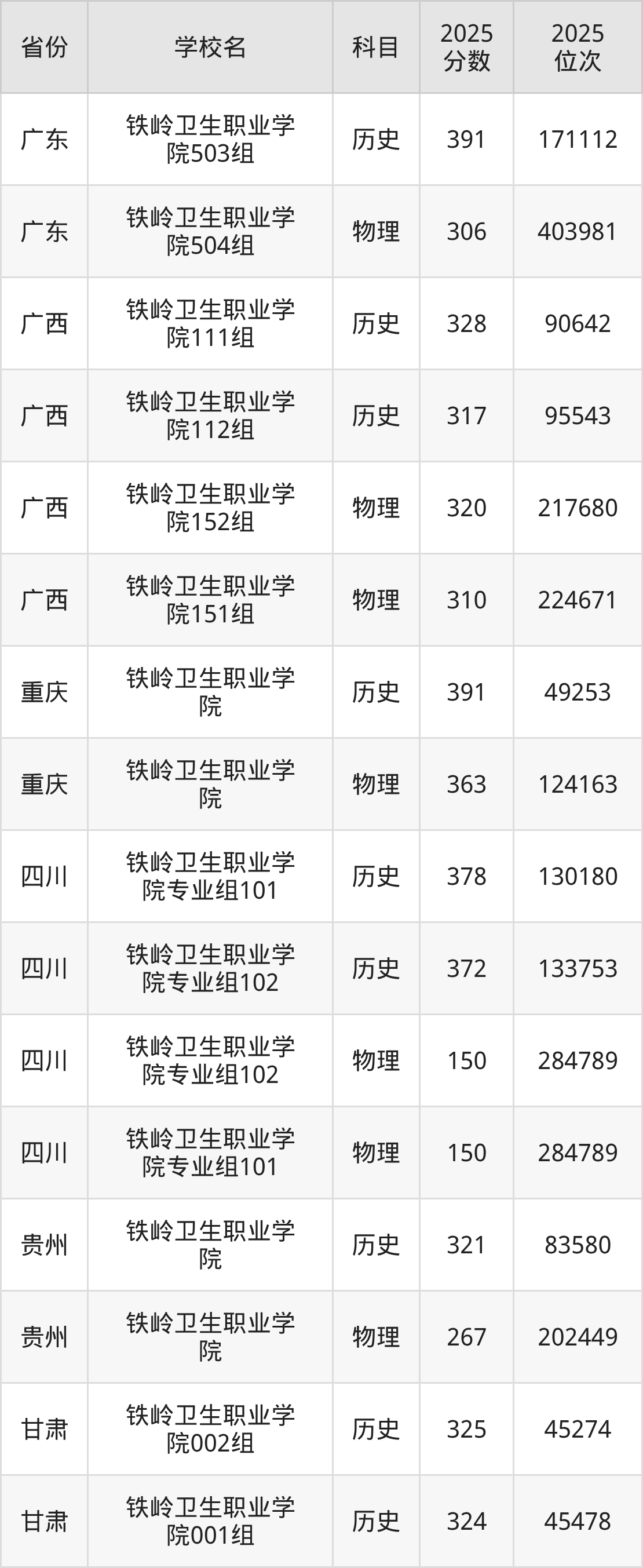 下面是铁岭卫生职业学院2025年录取分数线各省汇总,一起来了解下吧。