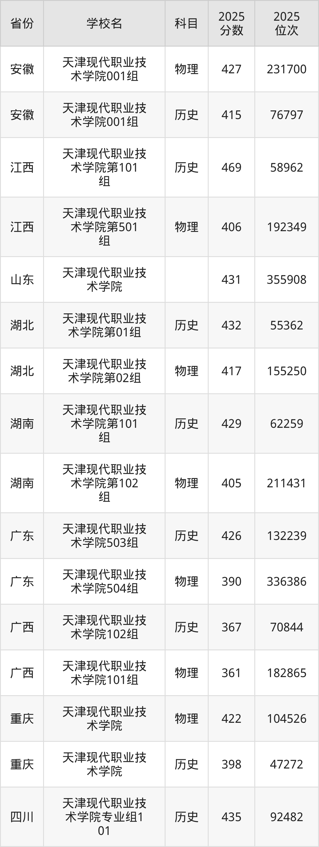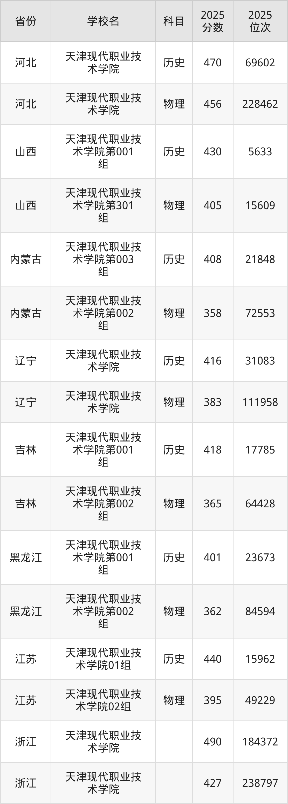下面是天津现代职业技术学院2025年录取分数线各省汇总,一起来了解下吧。