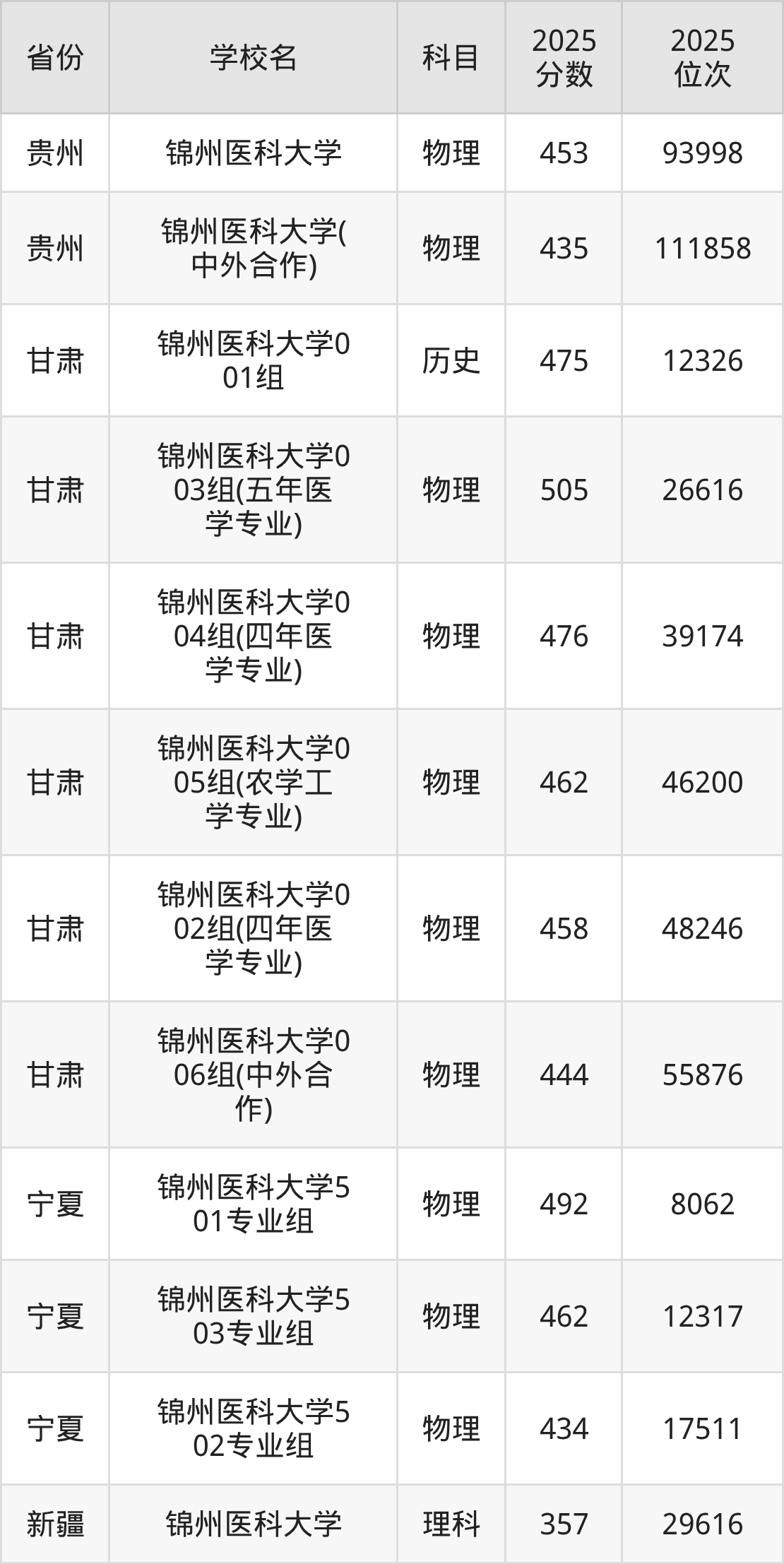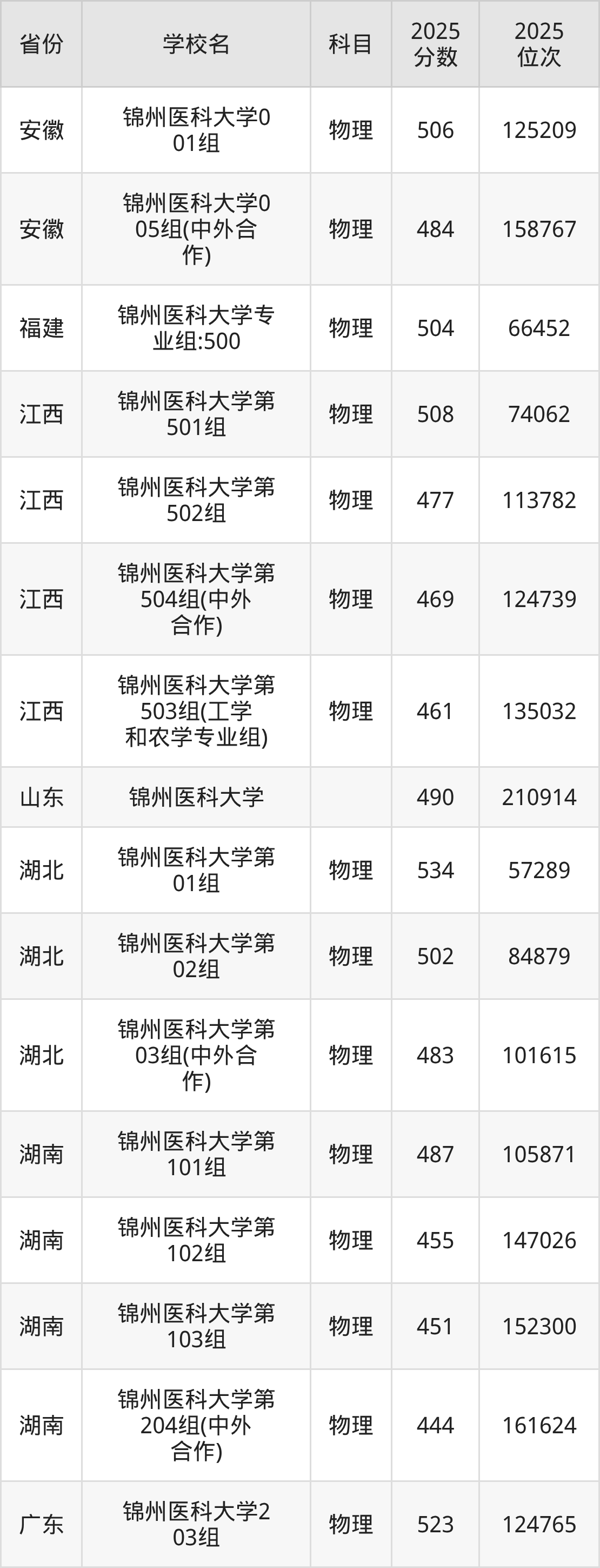 | 锦州医科大学 | 物理 | 450 | 81785 |
