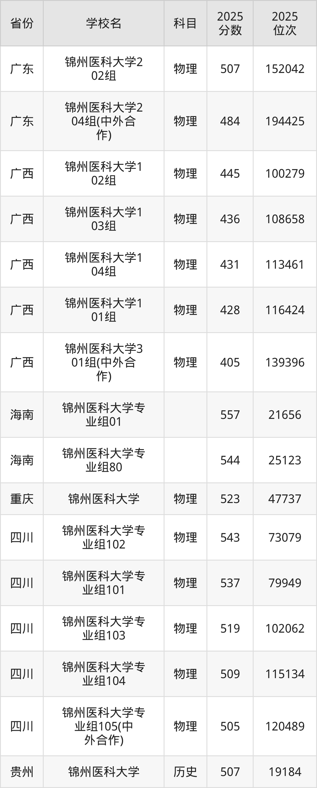 2025年锦州医科大学在省内分历史物理科目类录取,其中历史类最低分是487分、对应位次是17228名;物理类最低分是450分,对应位次是81785名。