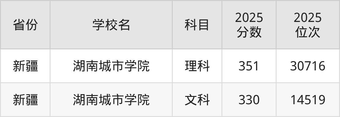 | 学校名 | 科目 | 2025 分数 | 2025 位次 |