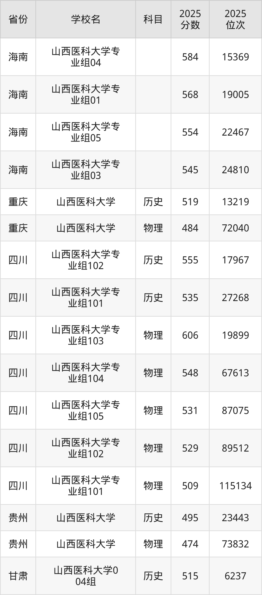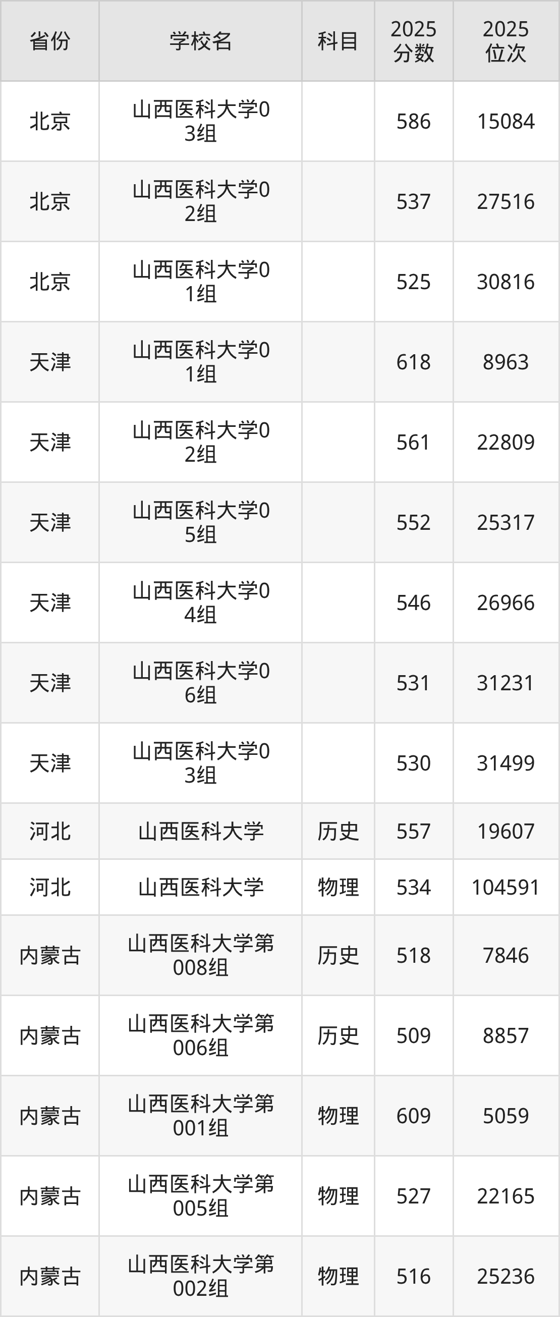 下面是山西医科大学2025年录取分数线各省汇总,一起来了解下吧。