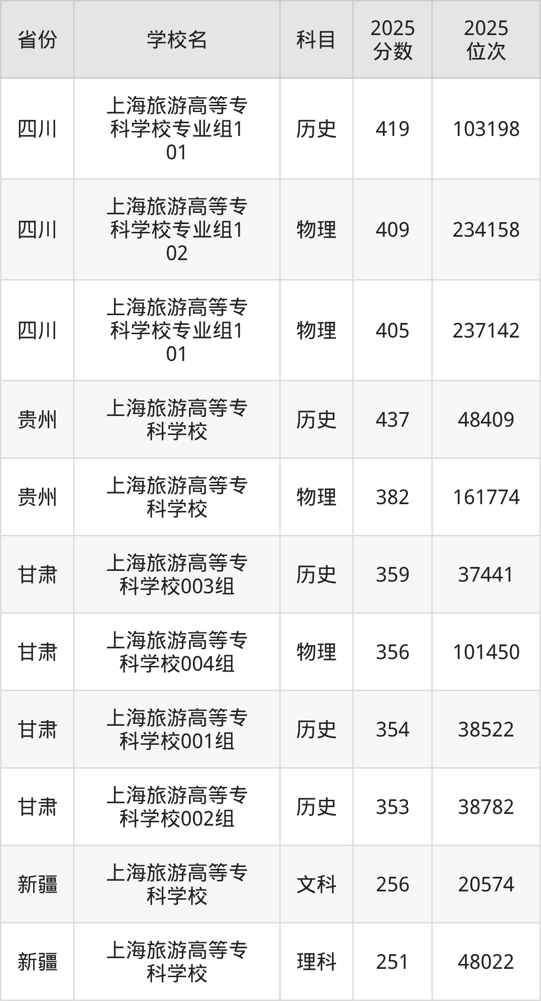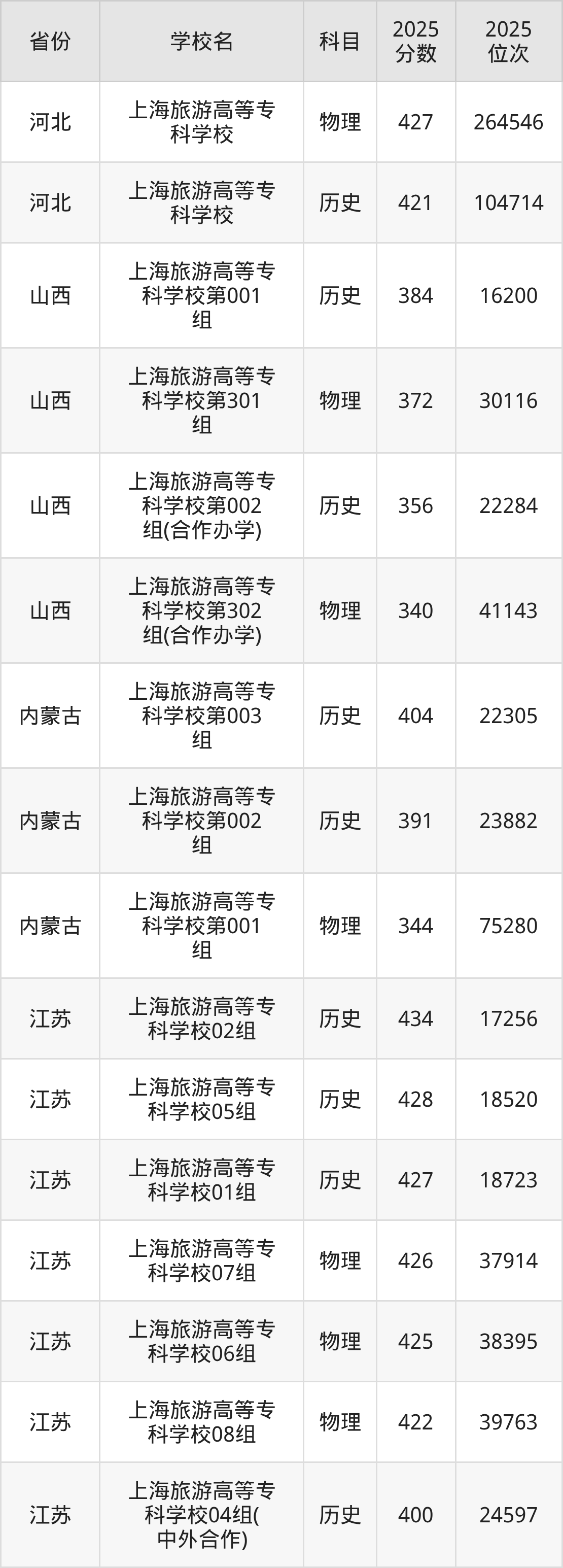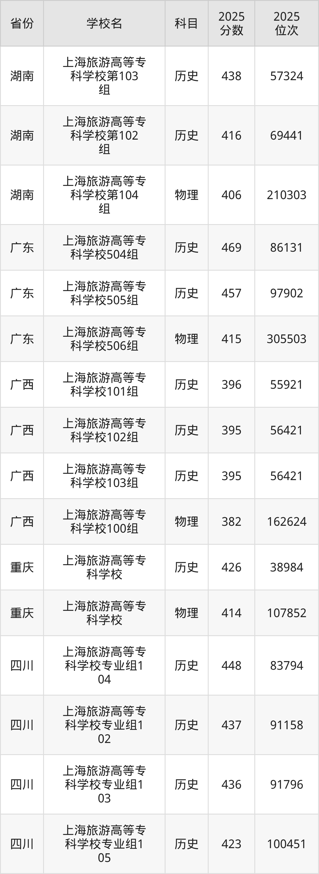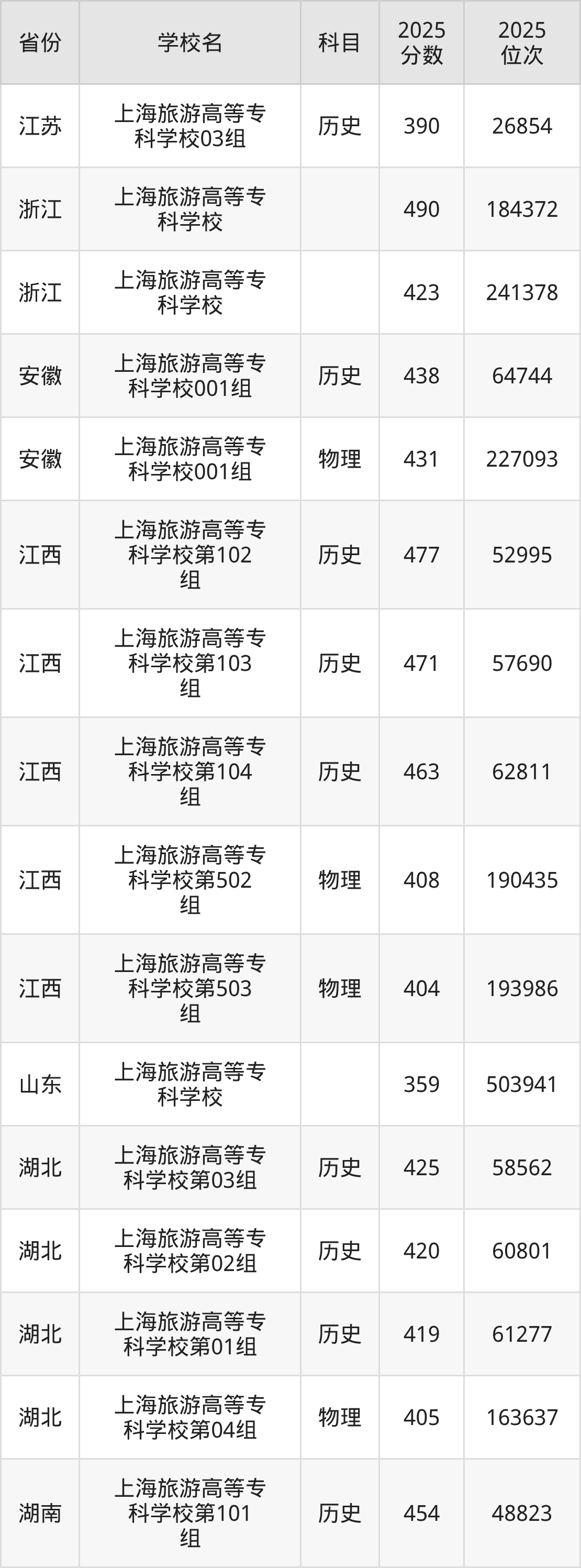 下面是上海旅游高等专科学校2025年录取分数线各省汇总,一起来了解下吧。