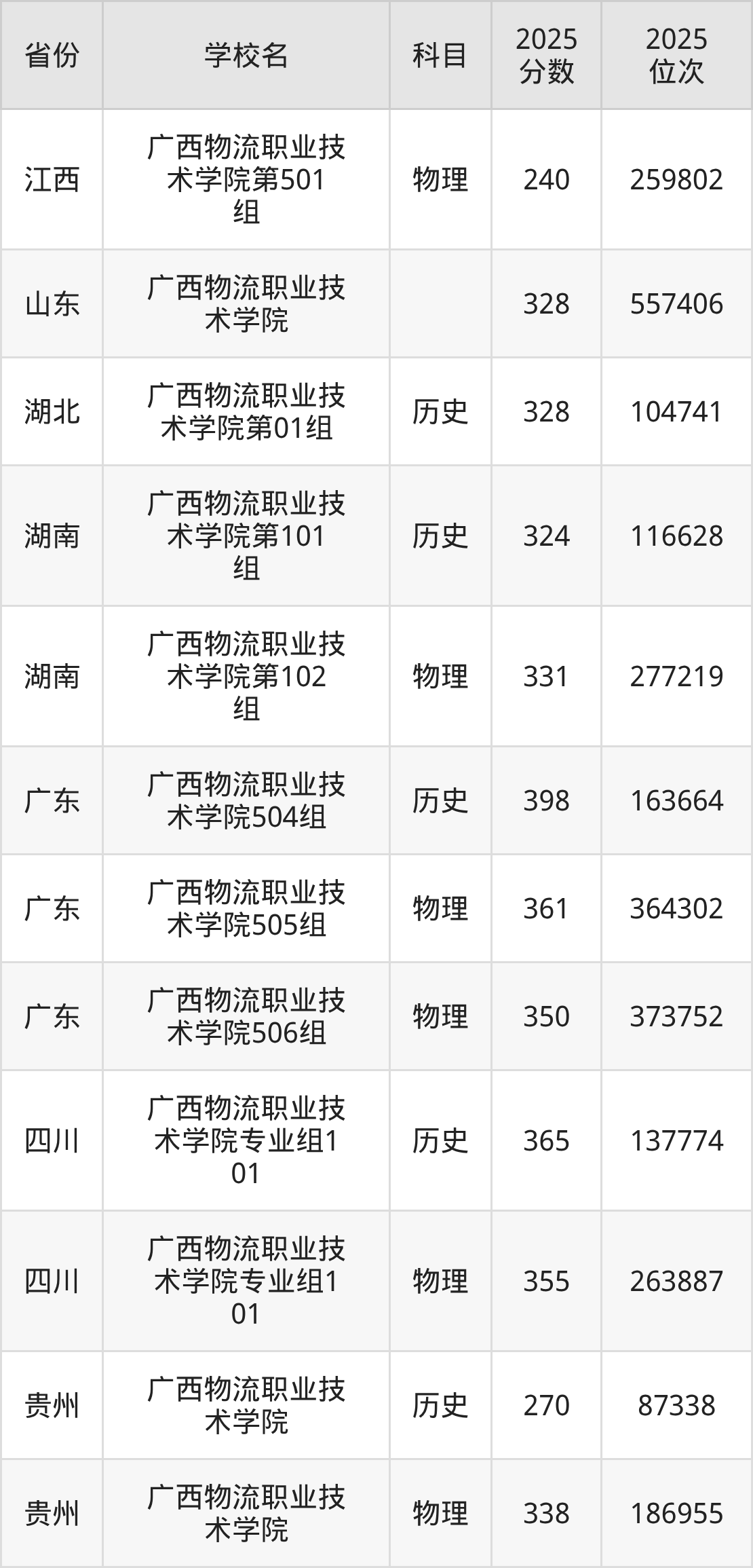下面是广西物流职业技术学院2025年录取分数线各省汇总,一起来了解下吧。