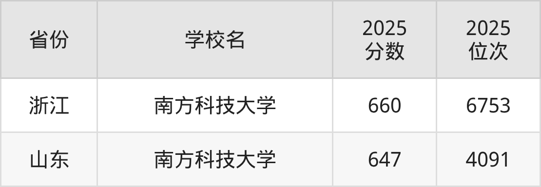 2026年南方科技大学录取分数线预计在640分及以上,在各省录取最低分存在一定差异,如:2025年南方科技大学在浙江录取最低分是660分,在山东录取最低分是647分,在广东录取最低物理类619分。
