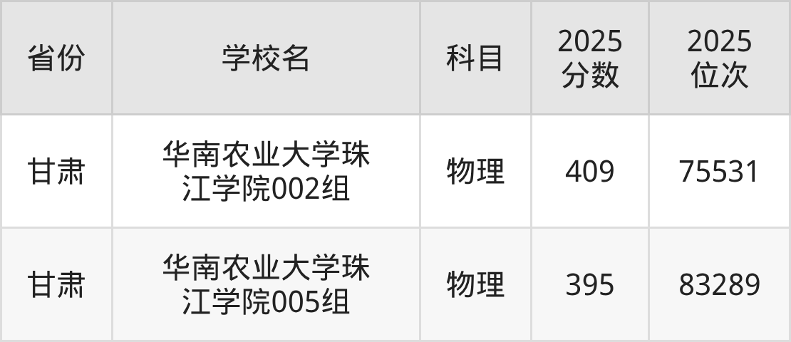 2025年华南农业大学珠江学院历史类最低分464分(90806名)、物理类最低分438分(273131名)。