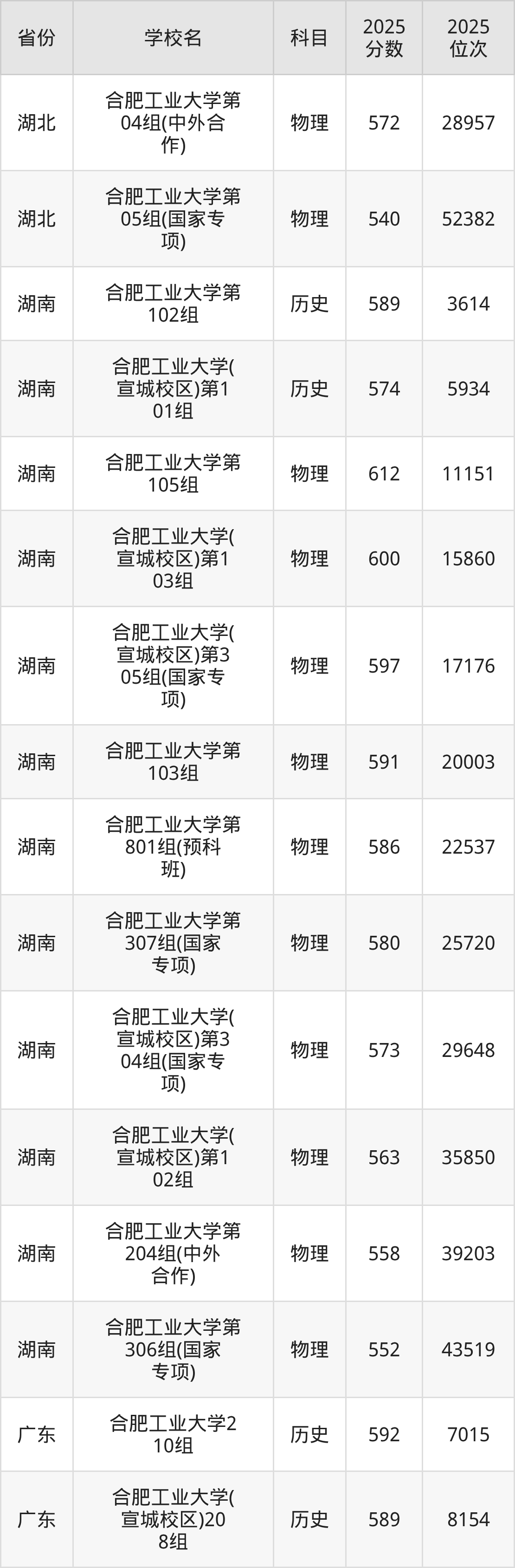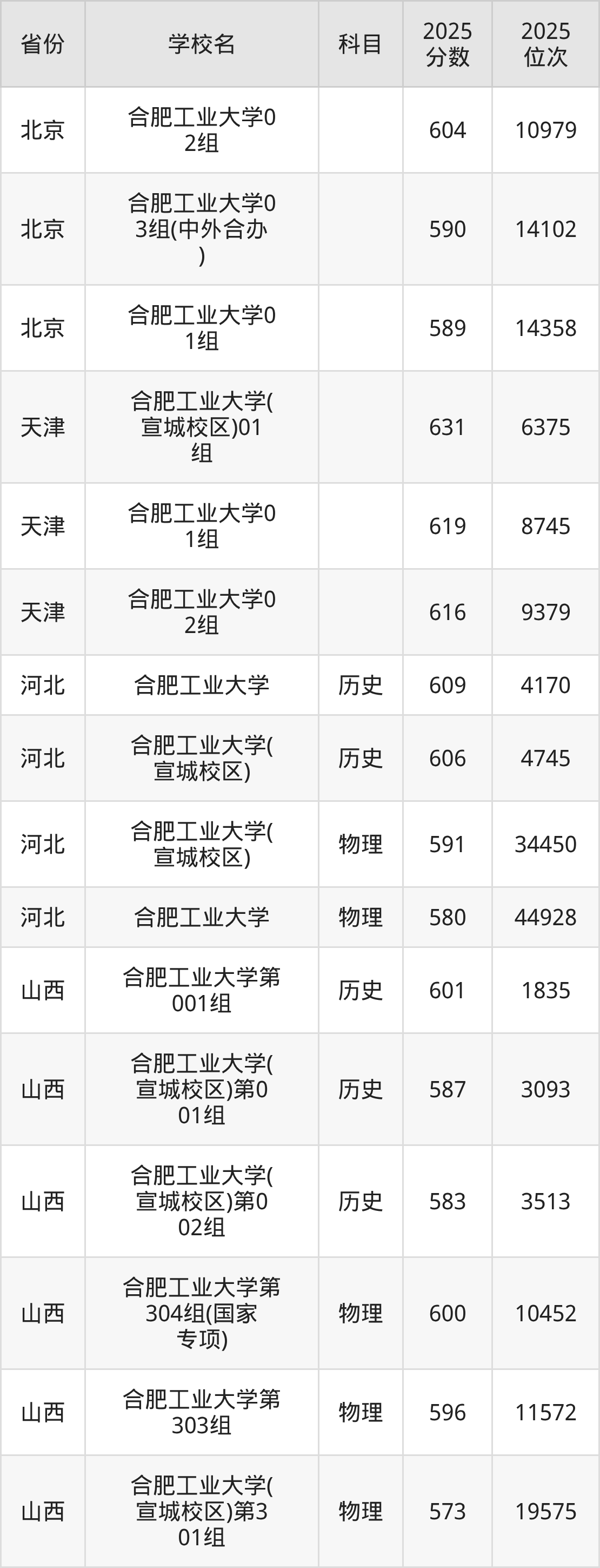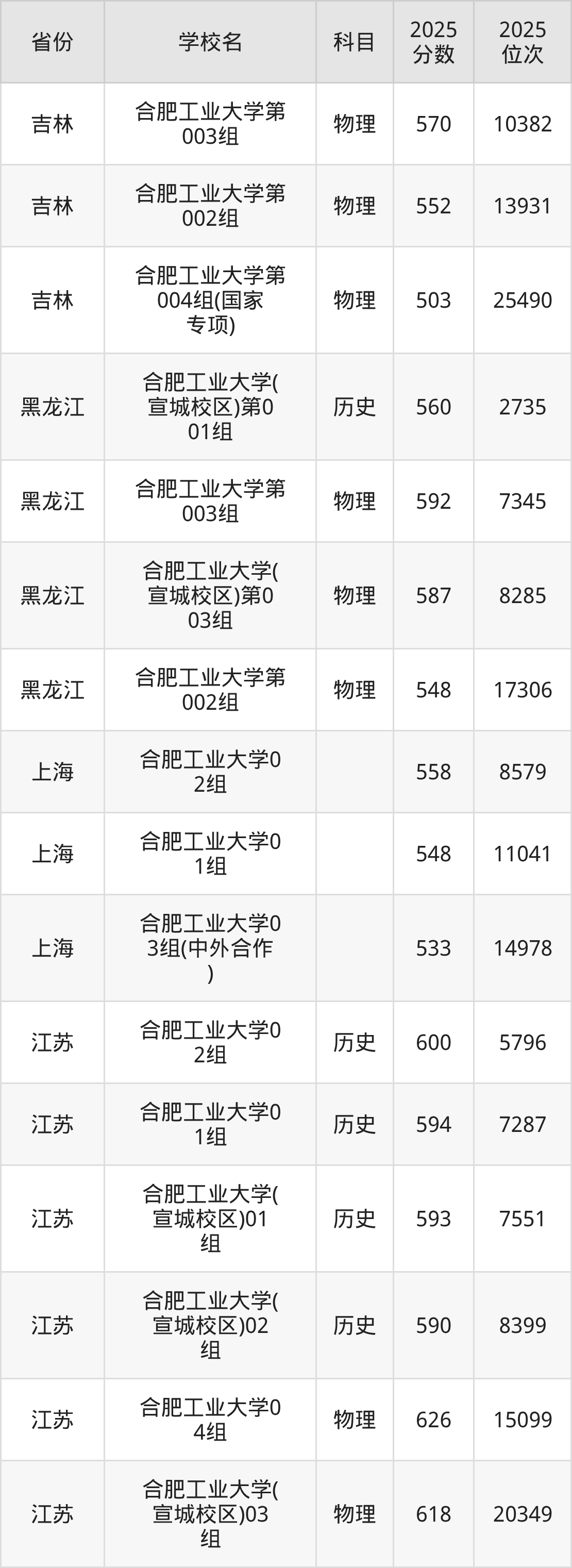 2025年合肥工业大学历史类最低分587分(5225名)、物理类最低分592分(32176名)。