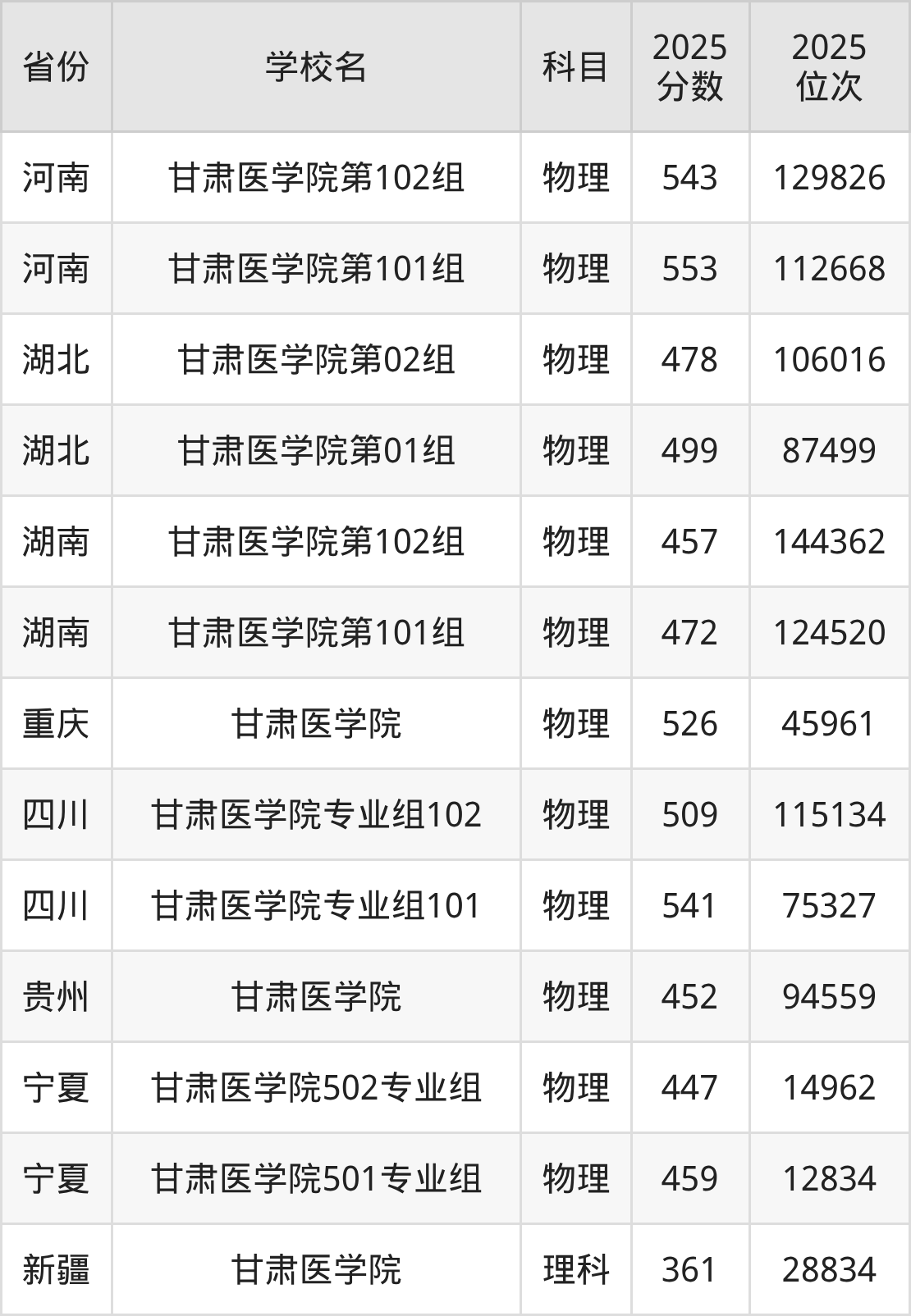 下面是甘肃医学院2025年录取分数线各省汇总,一起来了解下吧。