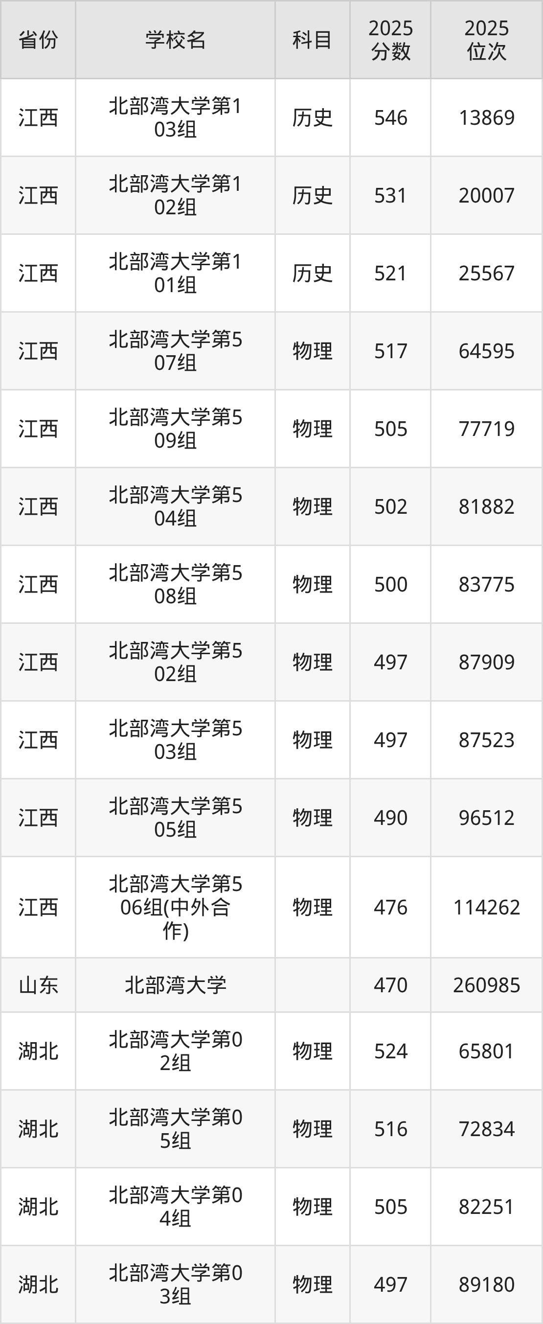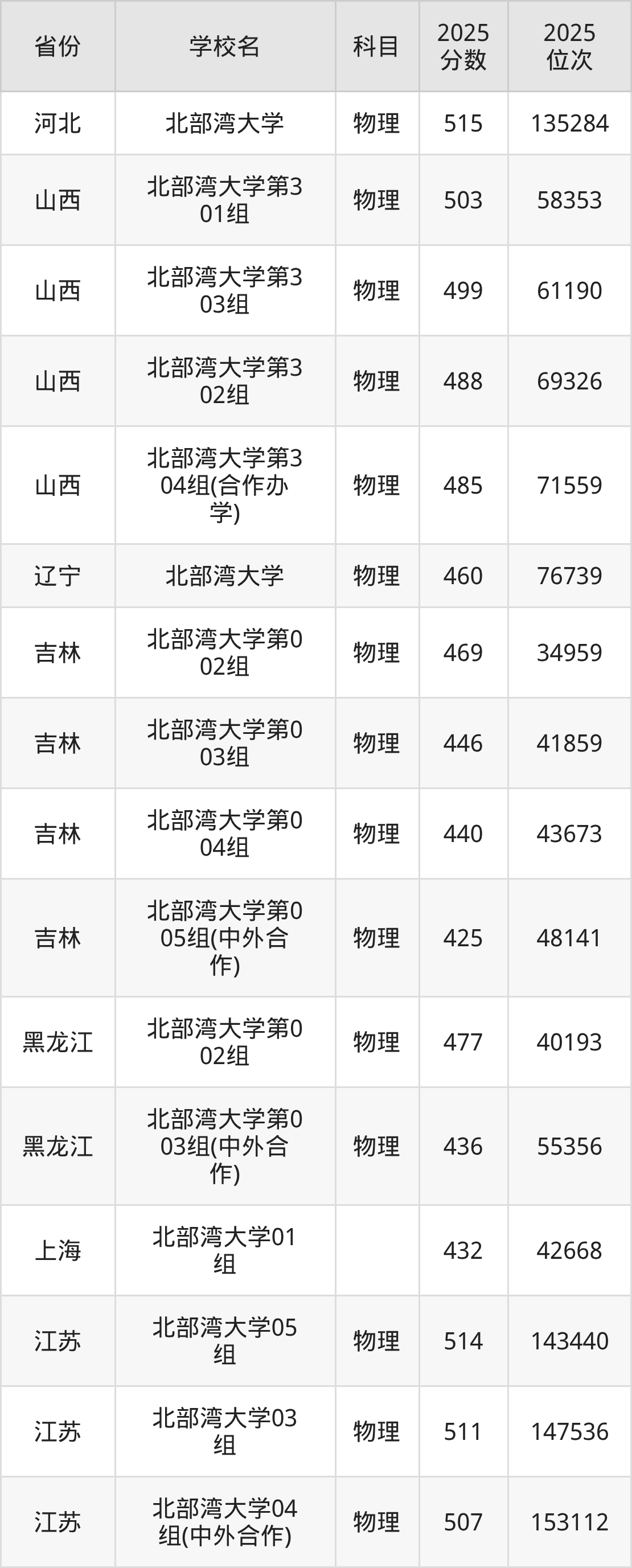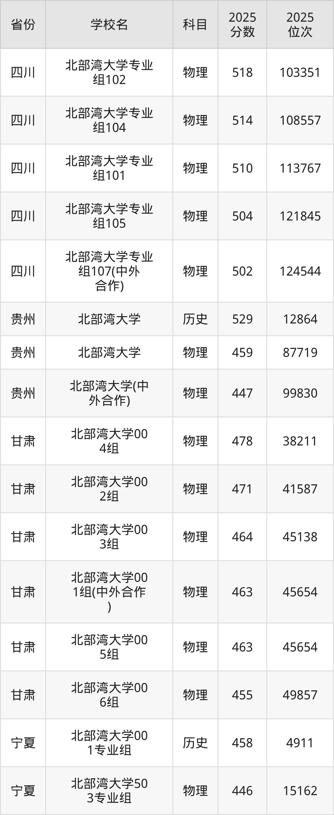 | 北部湾大学55 5组(地方专项 ) | 物理 | 463 | 84298 |