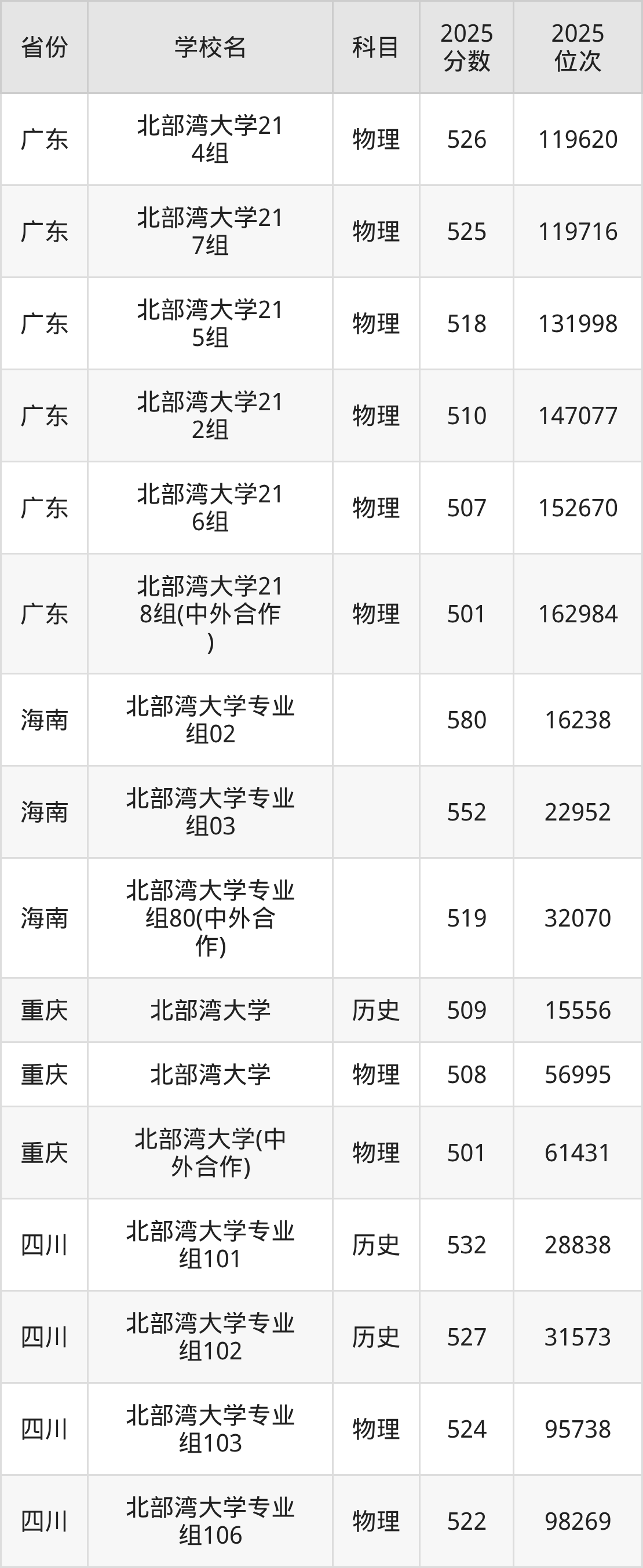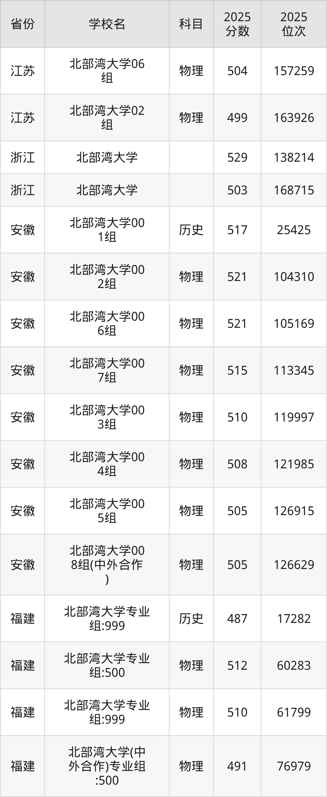 | 北部湾大学55 6组(地方专项 ) | 物理 | 473 | 75925 |
