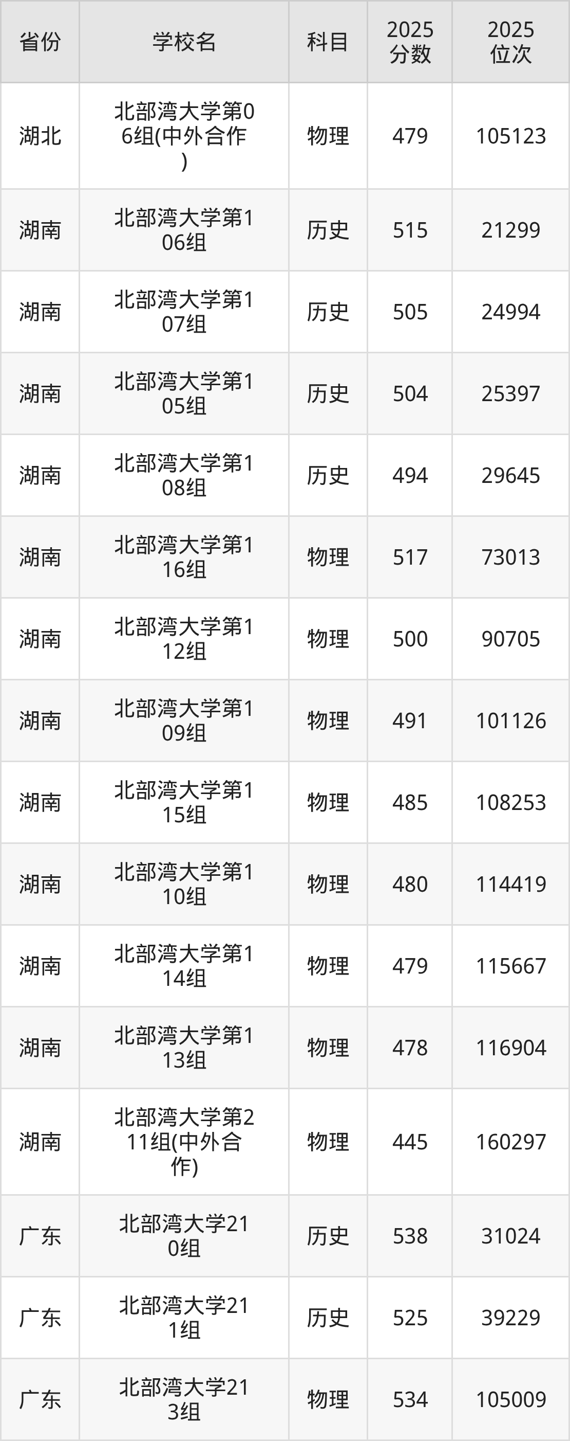 | 北部湾大学50 1组(国家专项 ) | 历史 | 503 | 15643 |