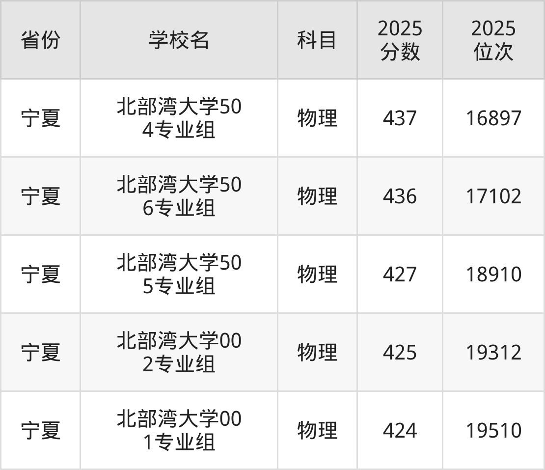 | 北部湾大学55 1组(国家专项 ) | 物理 | 456 | 90331 |