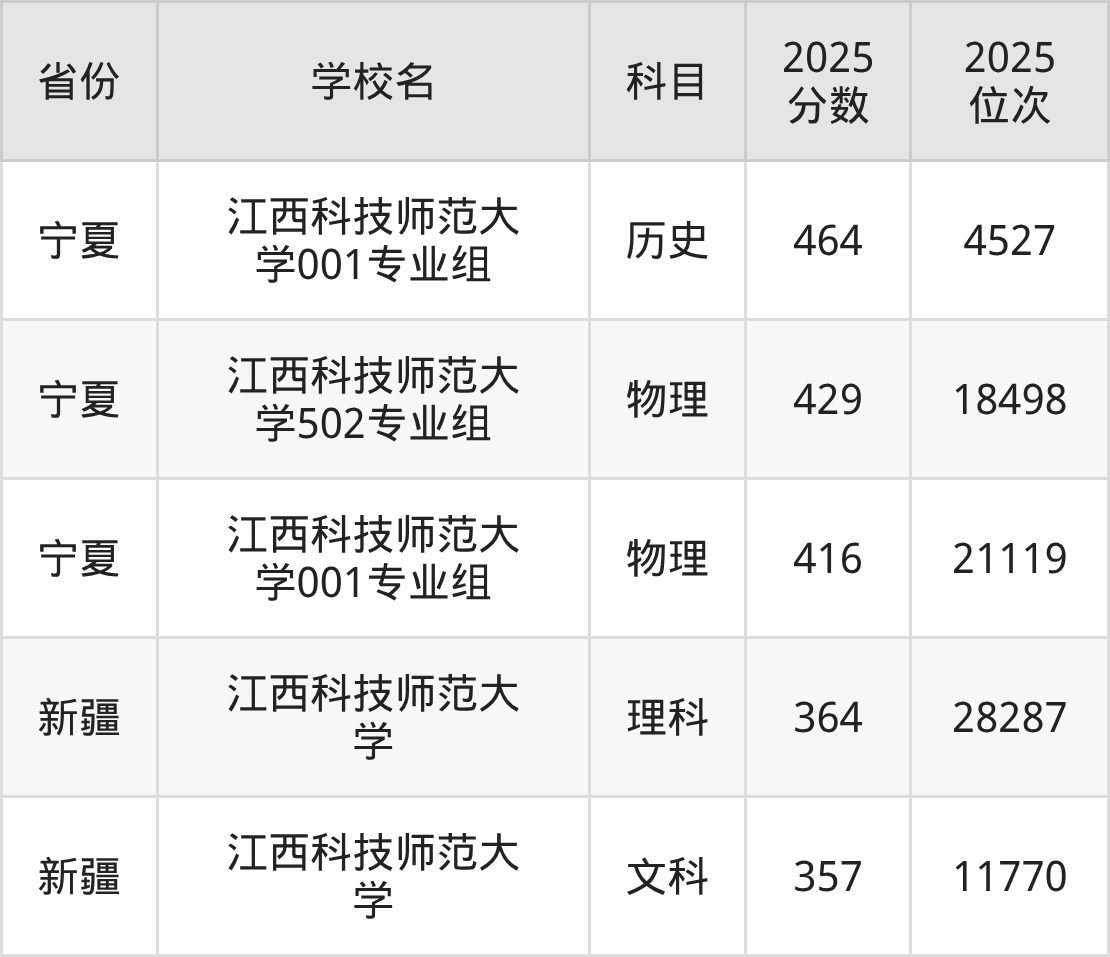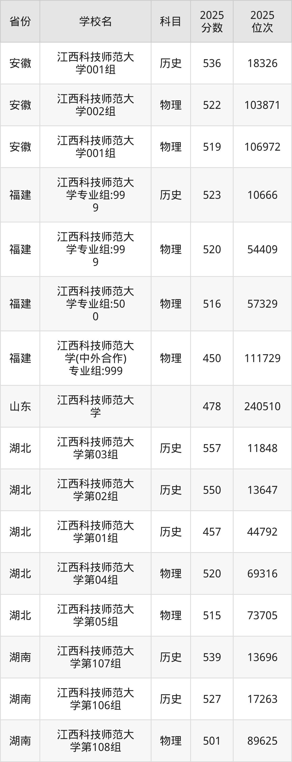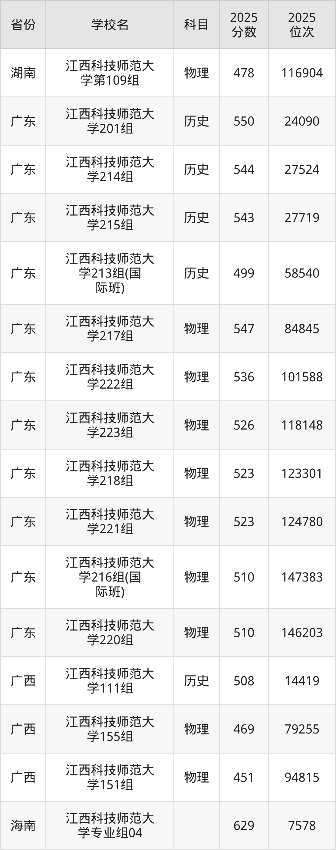 2025年江西科技师范大学历史类最低分496分(40359名)、物理类最低分458分(138800名)。