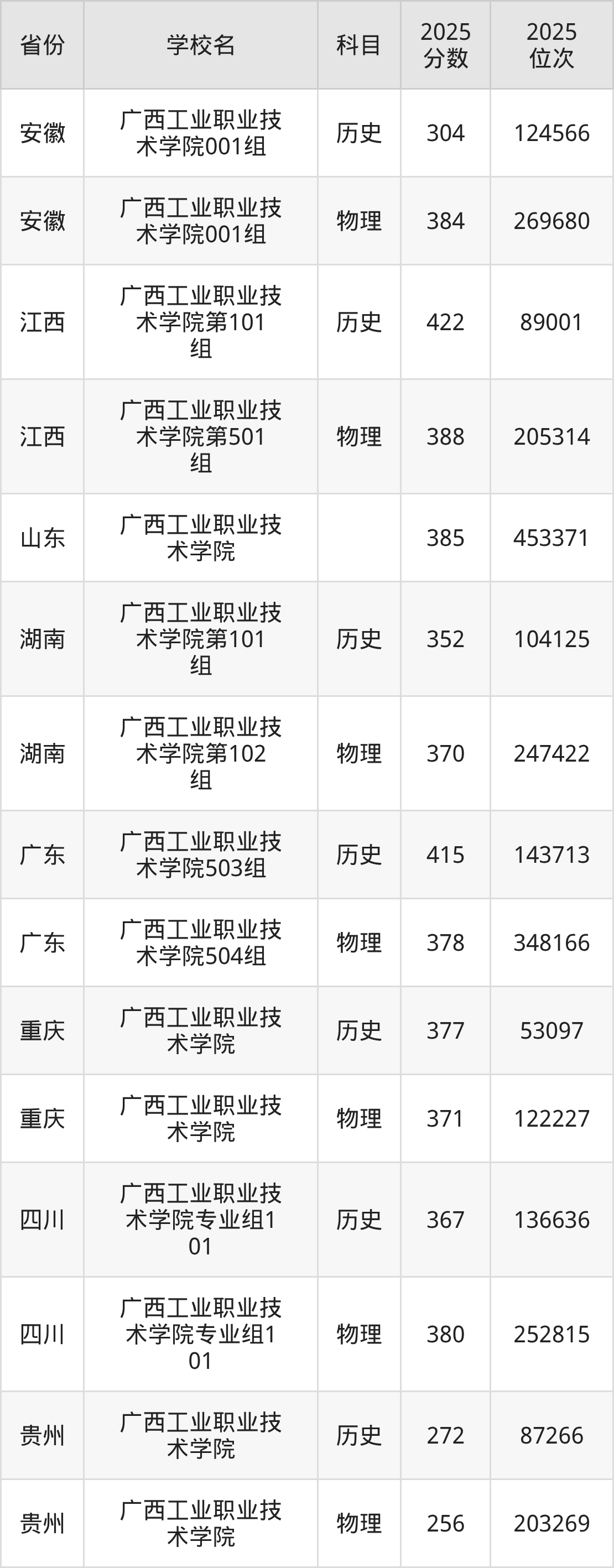 下面是广西工业职业技术学院2025年录取分数线各省汇总,一起来了解下吧。