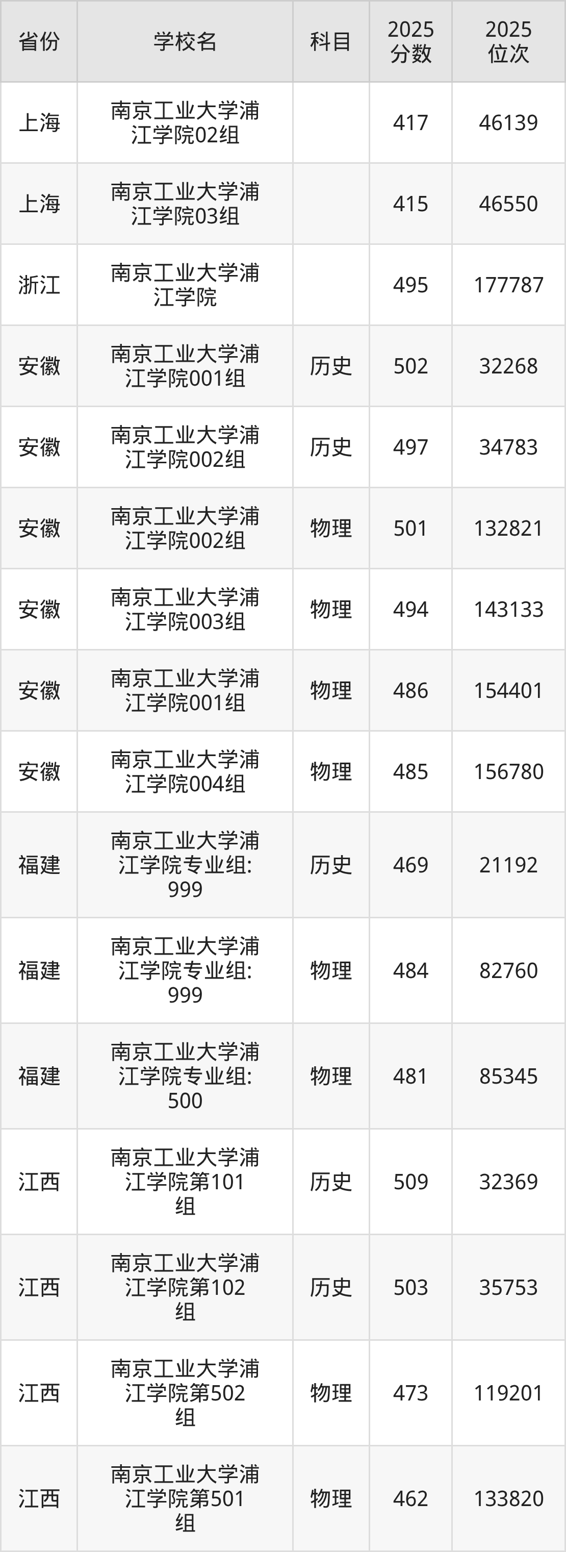 | 南京工业大学浦 江学院03组( 中外合作) | 历史 | 490 | 52535 |