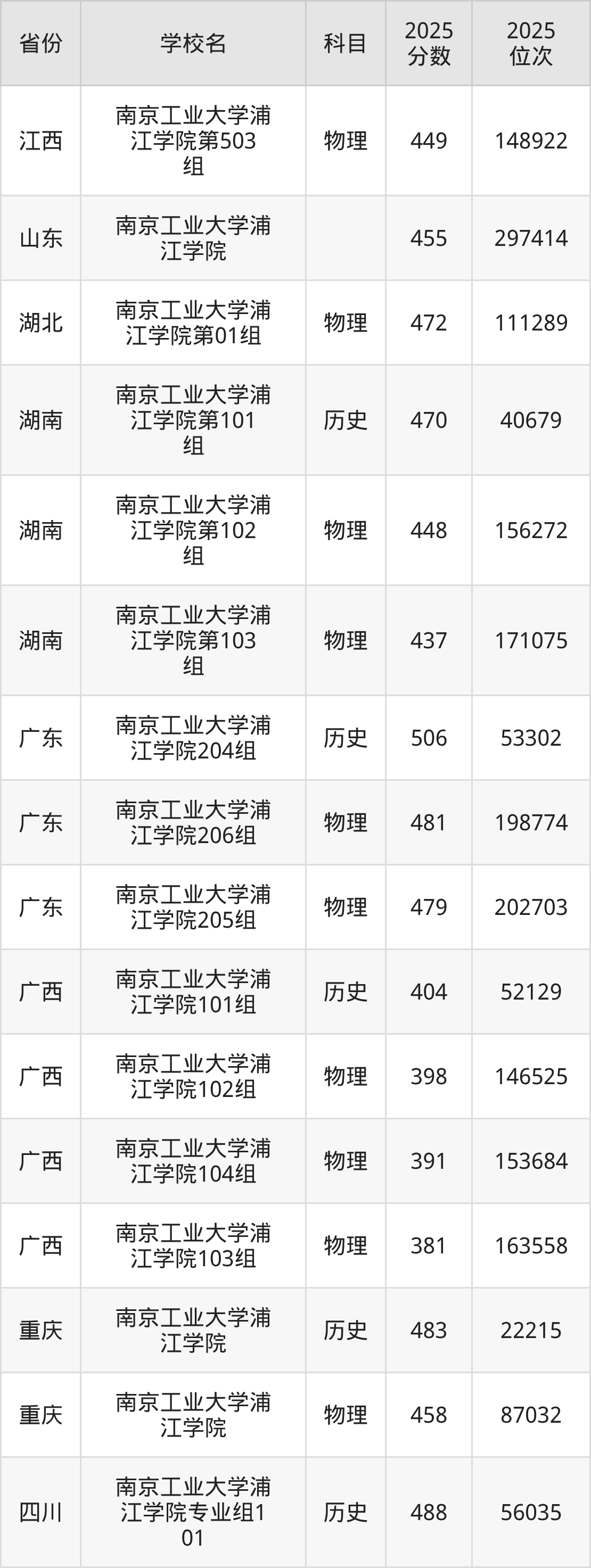 下面是南京工业大学浦江学院2025年录取分数线各省汇总,一起来了解下吧。