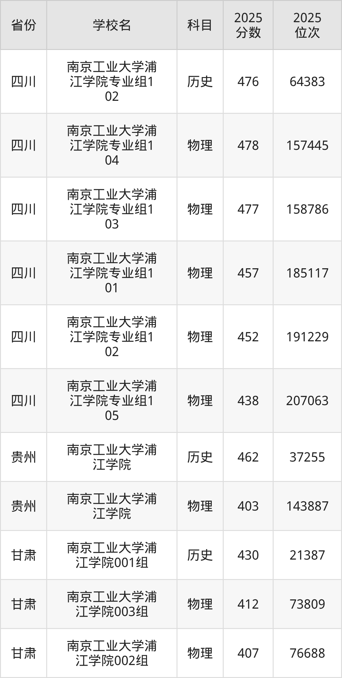 2025年南京工业大学浦江学院在省内分历史物理科目类录取,其中历史类最低分是490分、对应位次是52535名;物理类最低分是483分,对应位次是184370名。