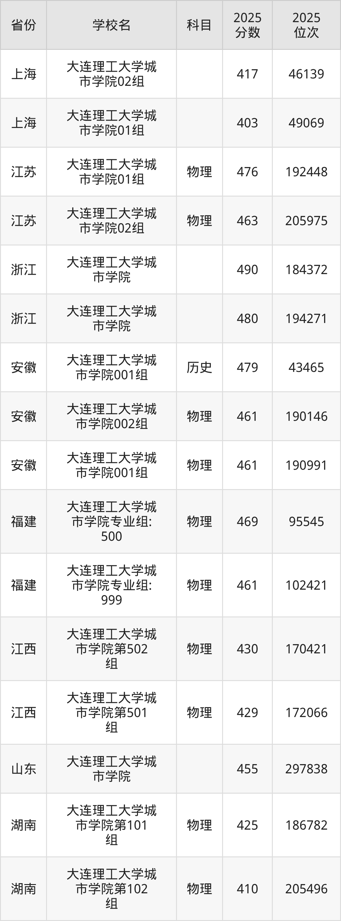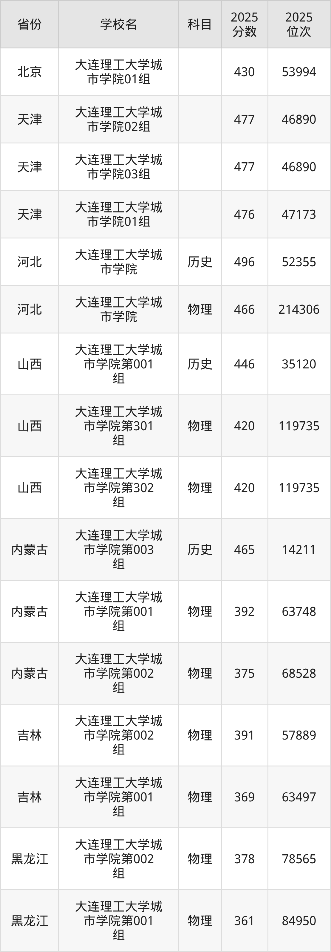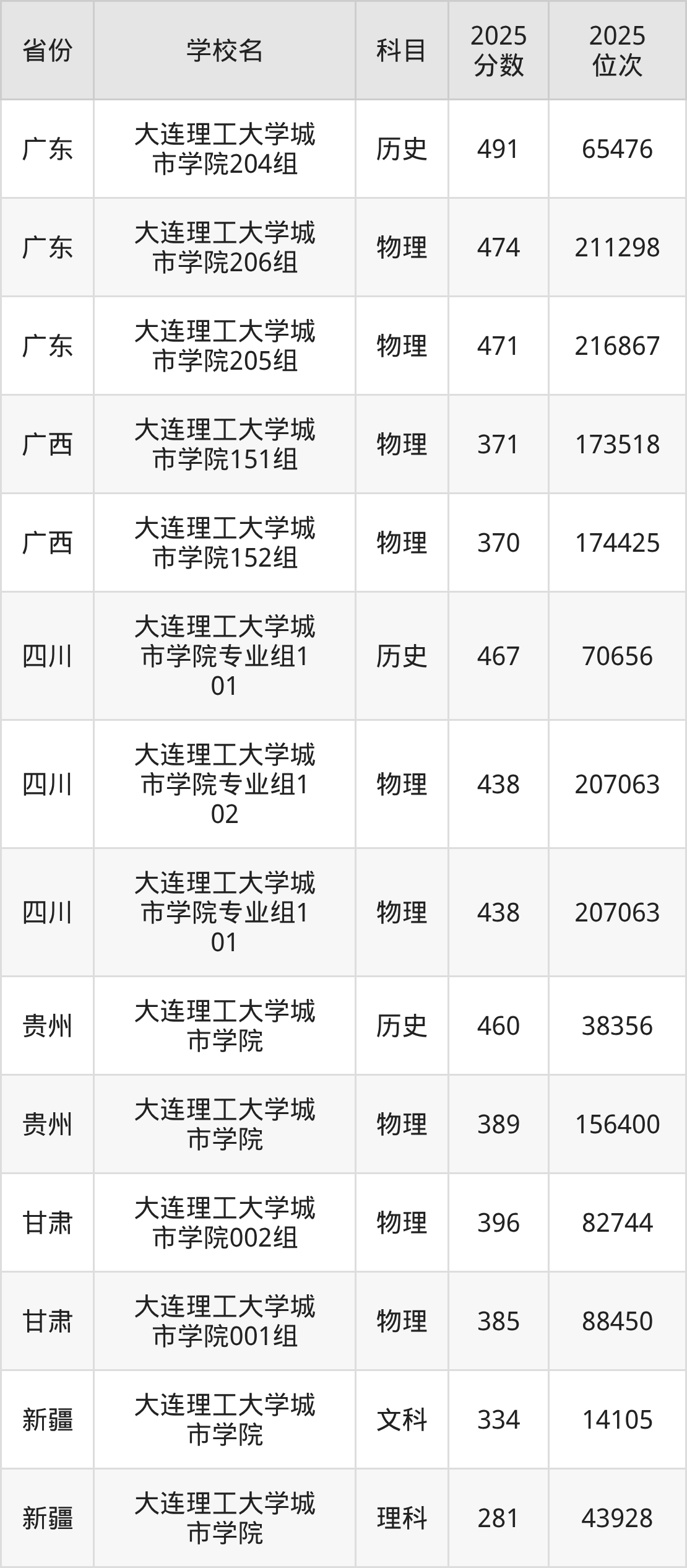 下面是大连理工大学城市学院2025年录取分数线各省汇总,一起来了解下吧。