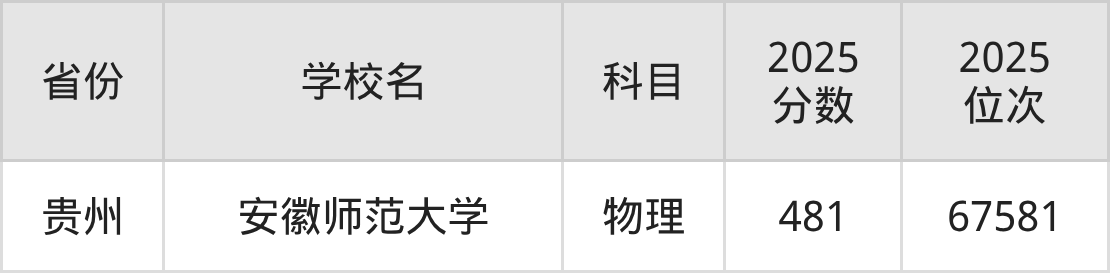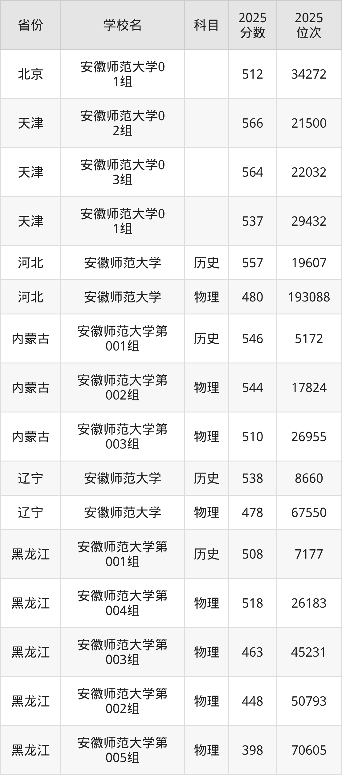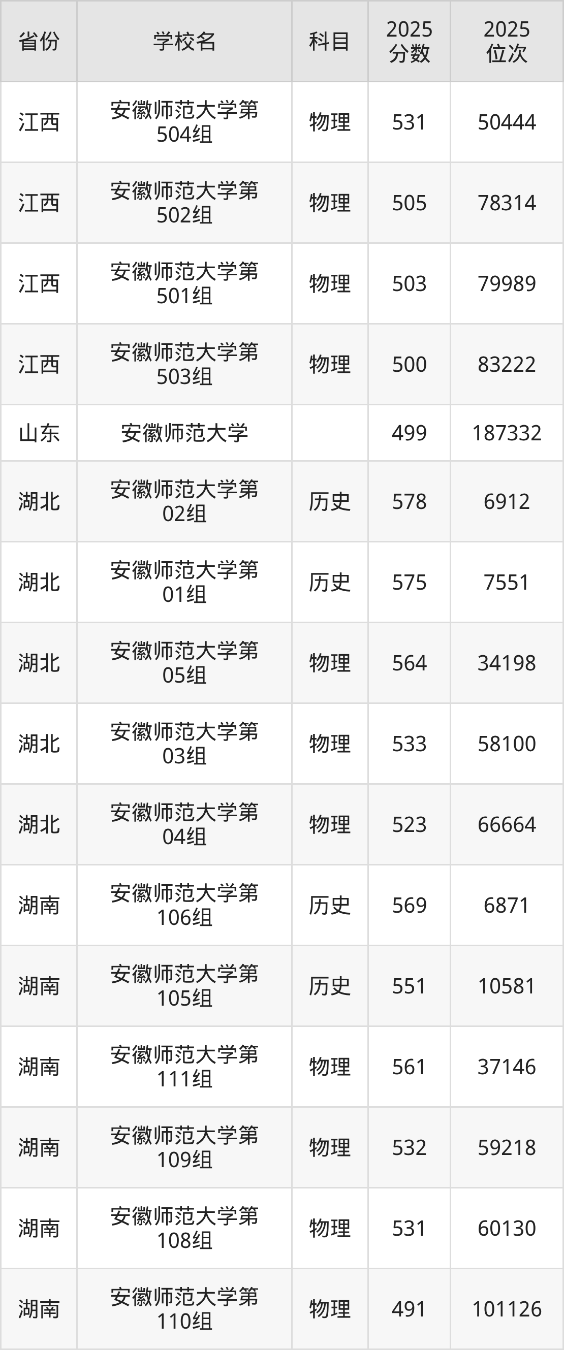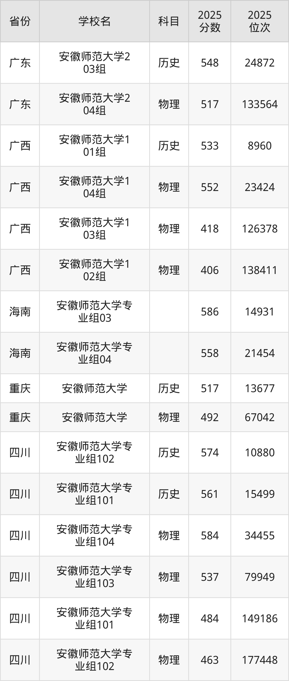 | 安徽师范大学0 41组 | 物理 | 580 | 41704 |