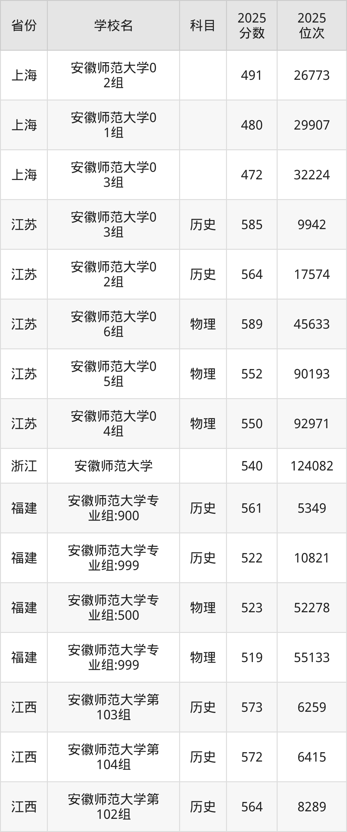 下面是安徽师范大学2025年录取分数线各省汇总,一起来了解下吧。