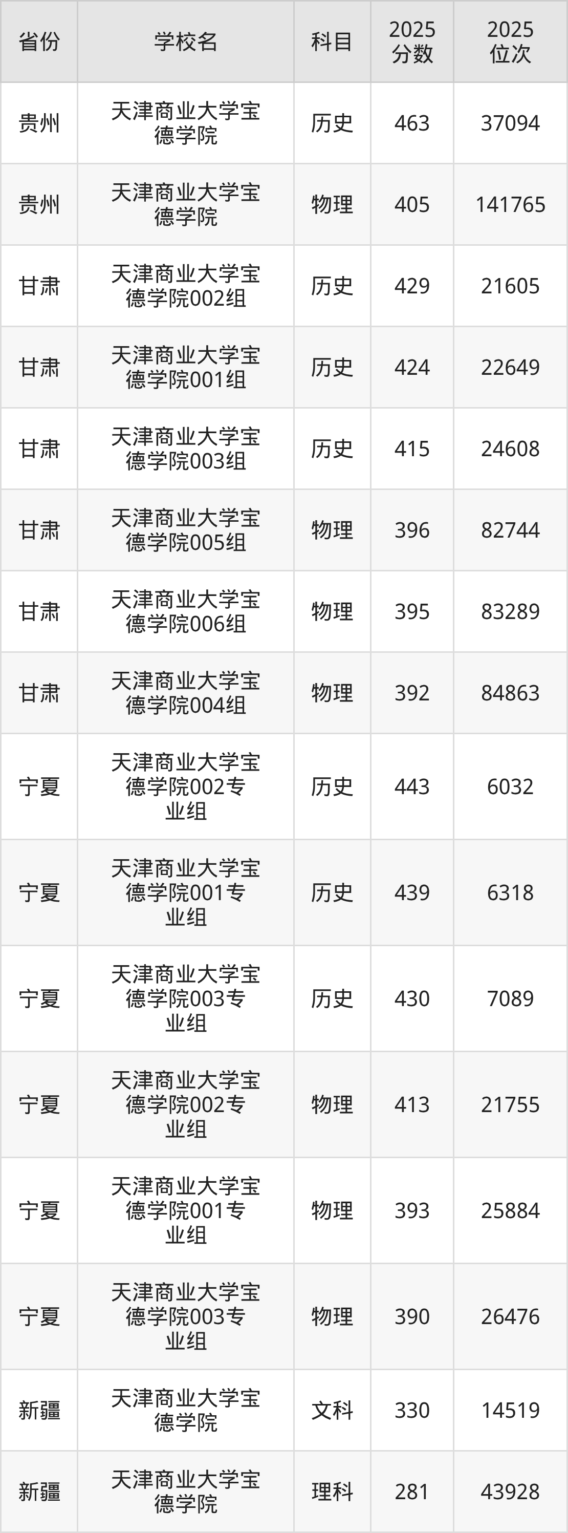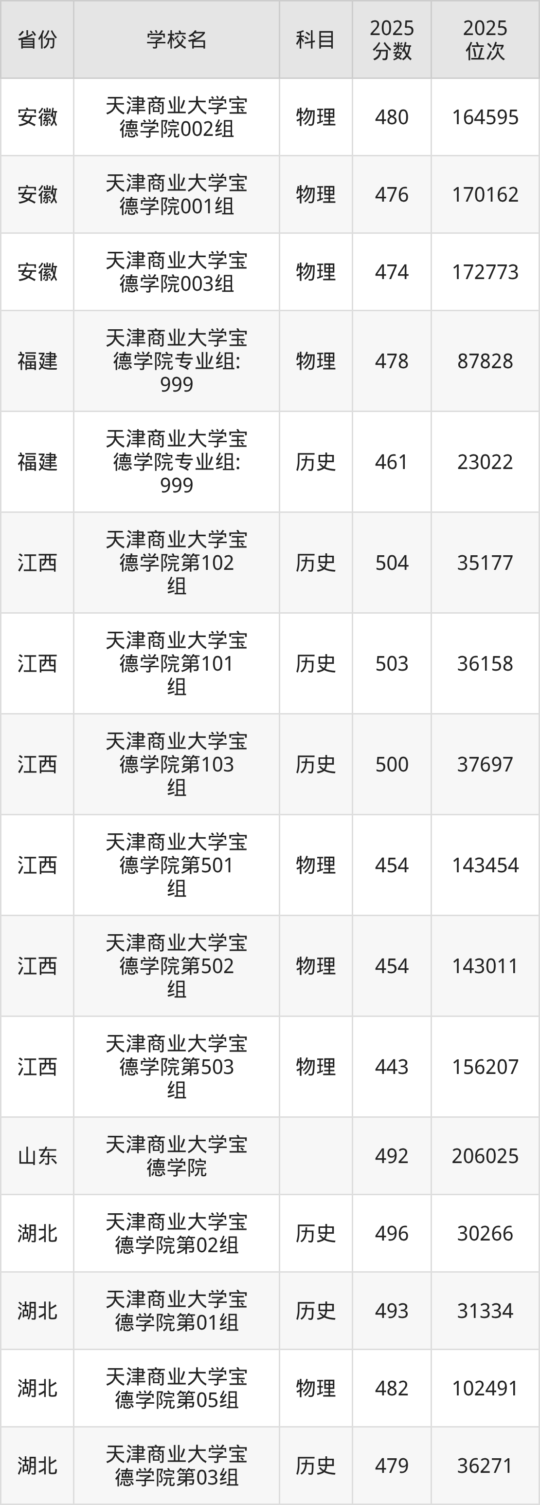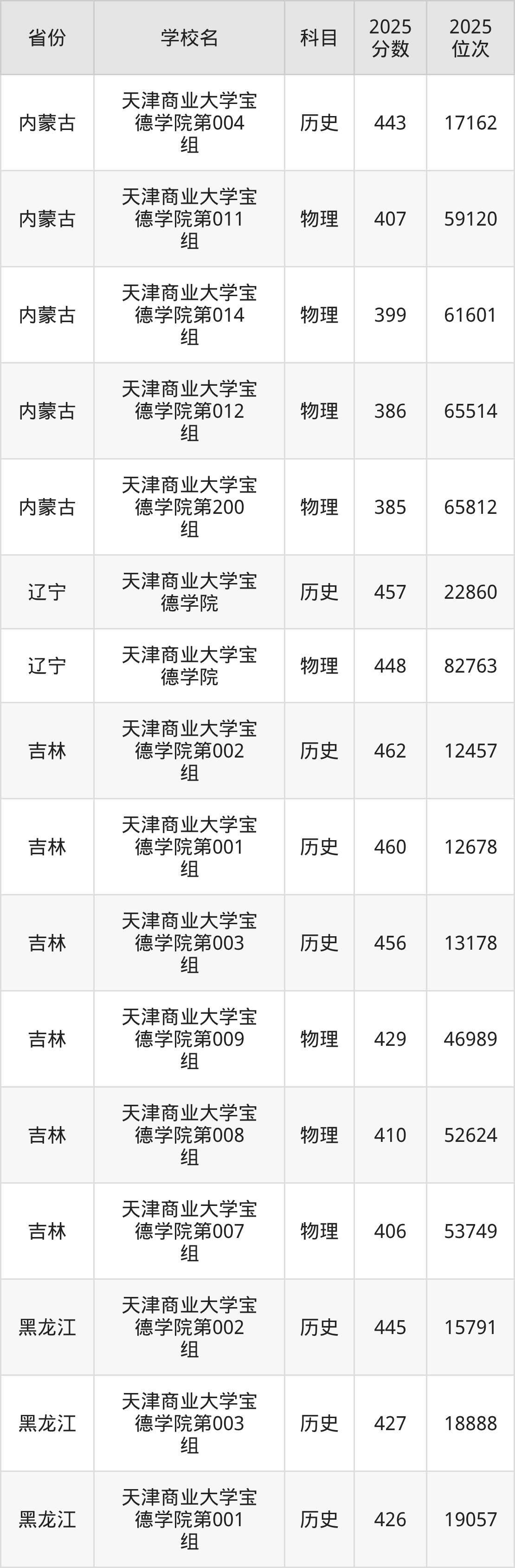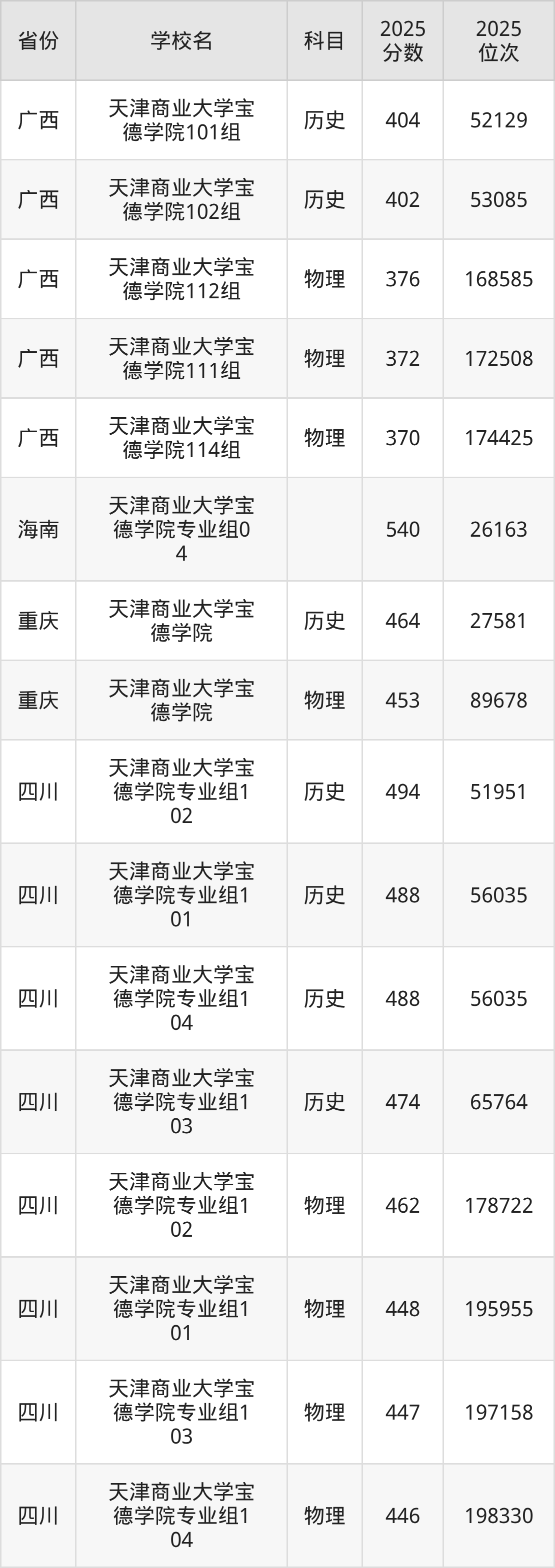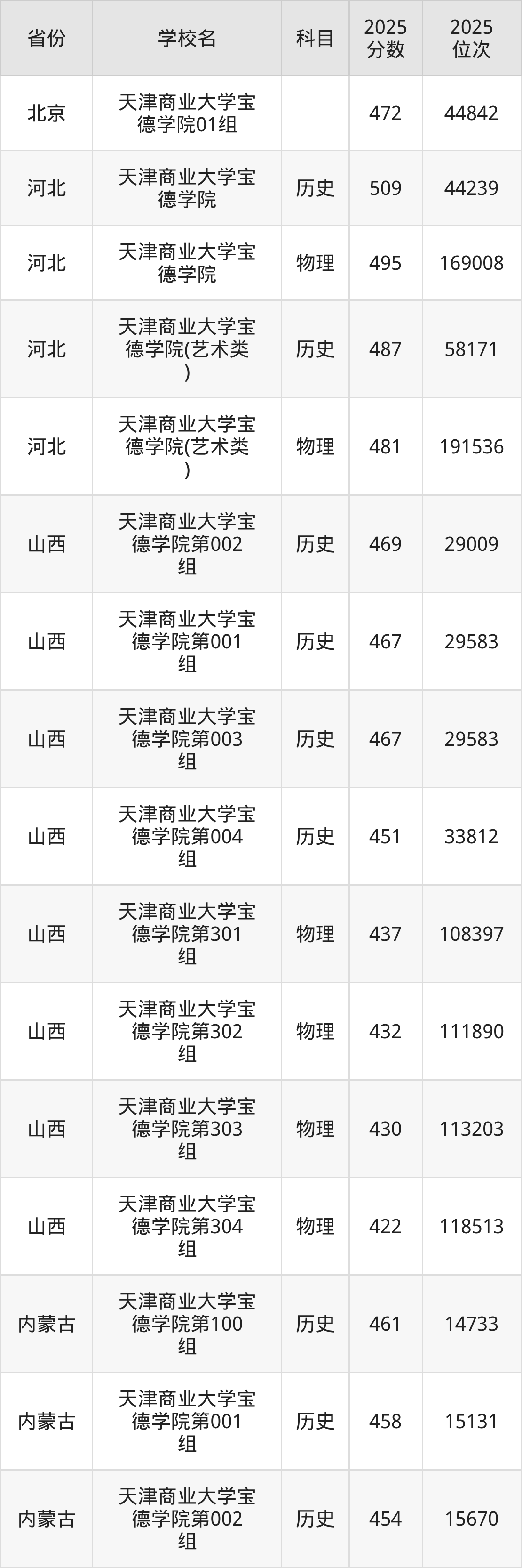 下面是天津商业大学宝德学院2025年录取分数线各省汇总,一起来了解下吧。