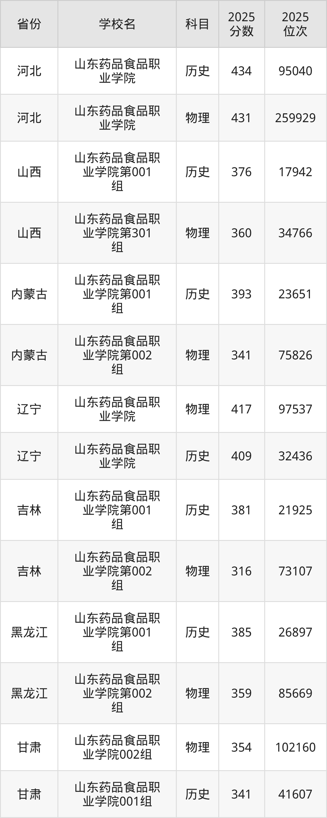 下面是山东药品食品职业学院2025年录取分数线各省汇总,一起来了解下吧。