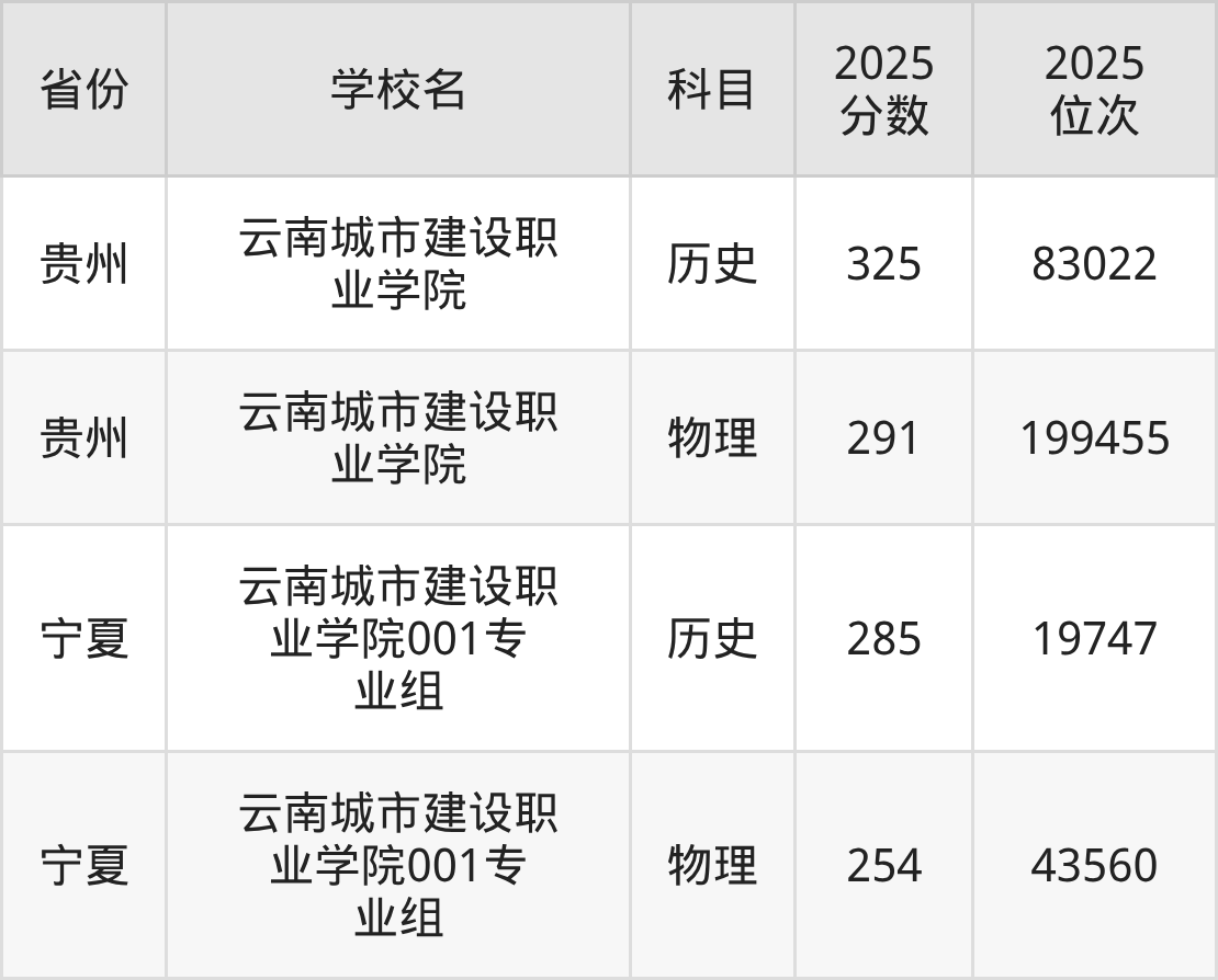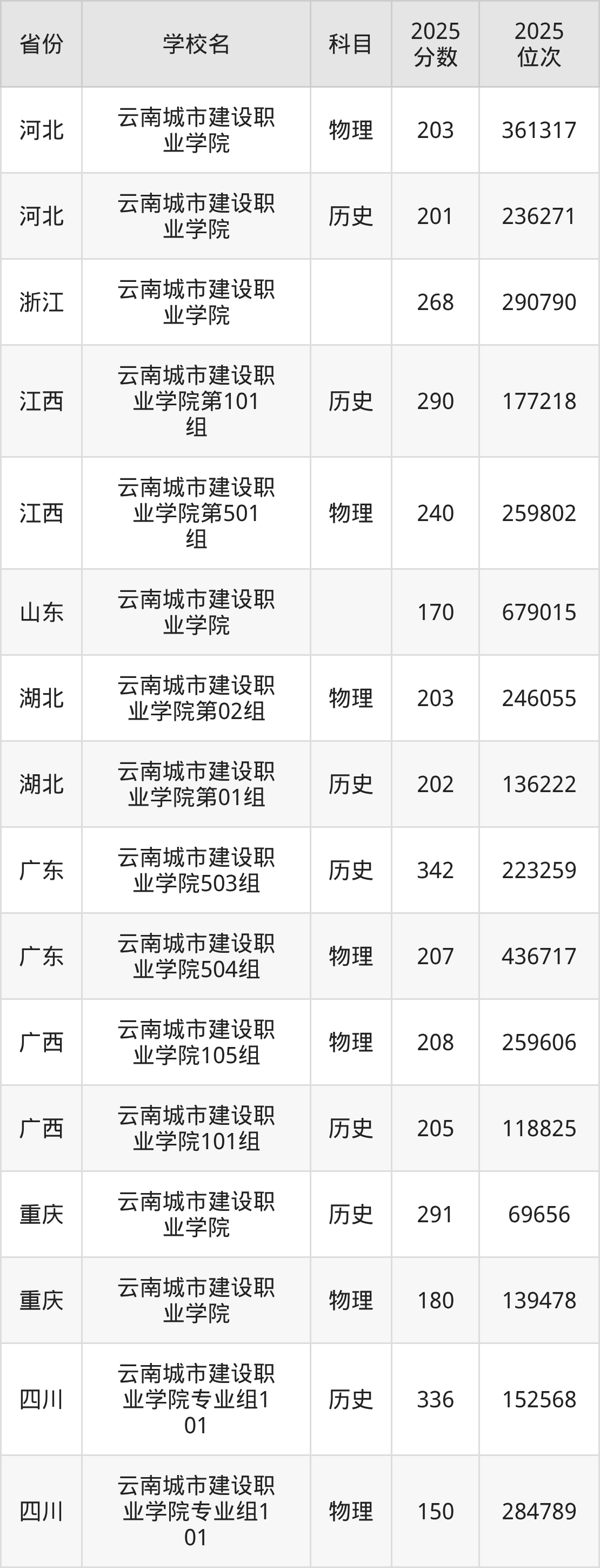 下面是云南城市建设职业学院2025年录取分数线各省汇总,一起来了解下吧。