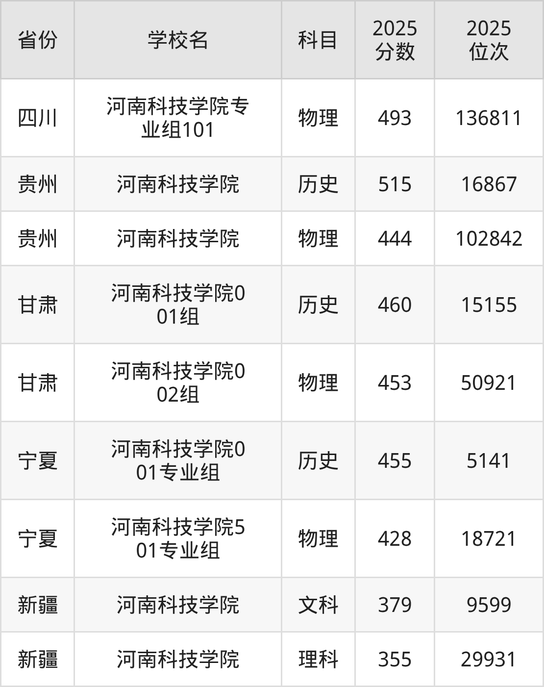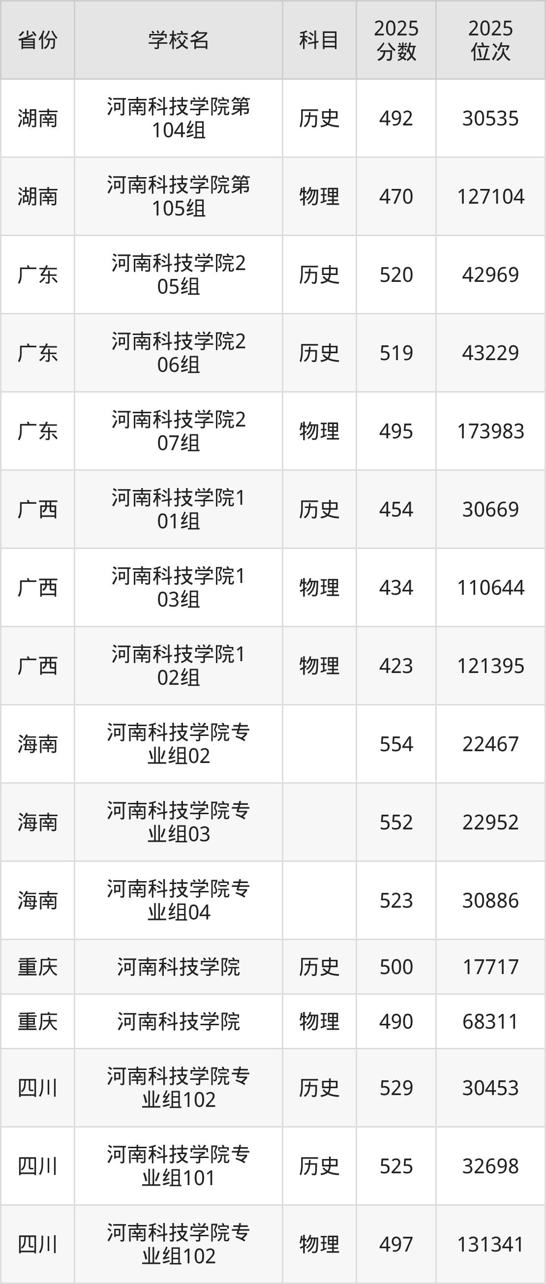 2025年河南科技学院历史类最低分484分(17924名)、物理类最低分493分(75303名)。