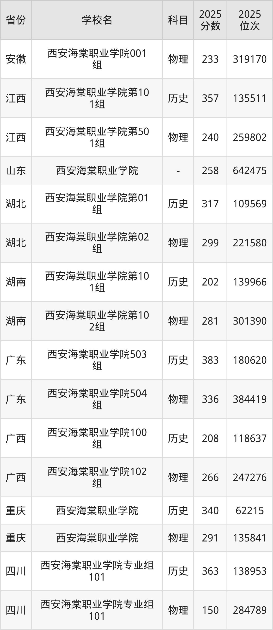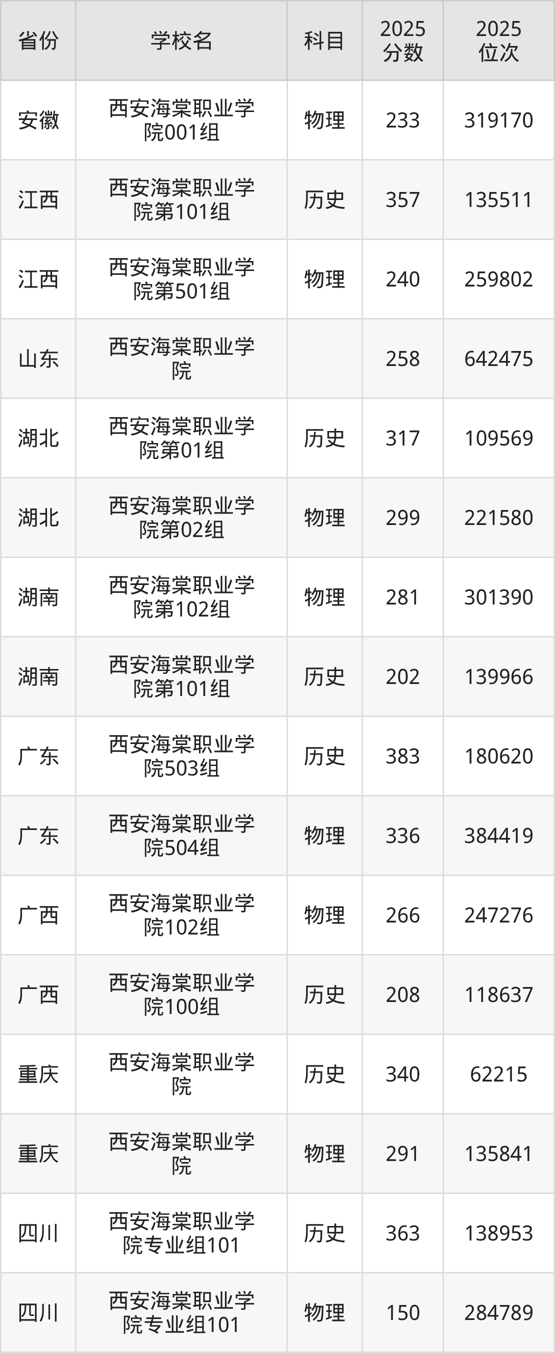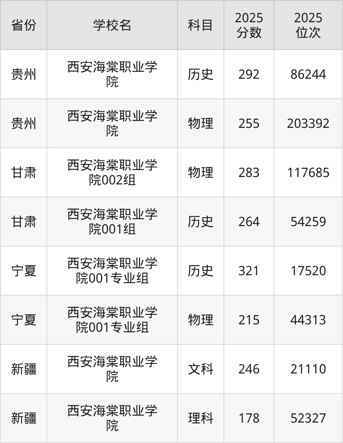 下面是西安海棠职业学院2025年录取分数线各省汇总,一起来了解下吧。