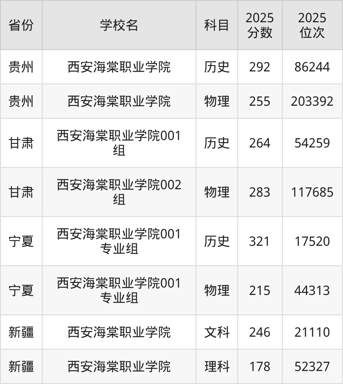 2025年西安海棠职业学院历史类最低分264分(54259名)、物理类最低分283分(117685名)。