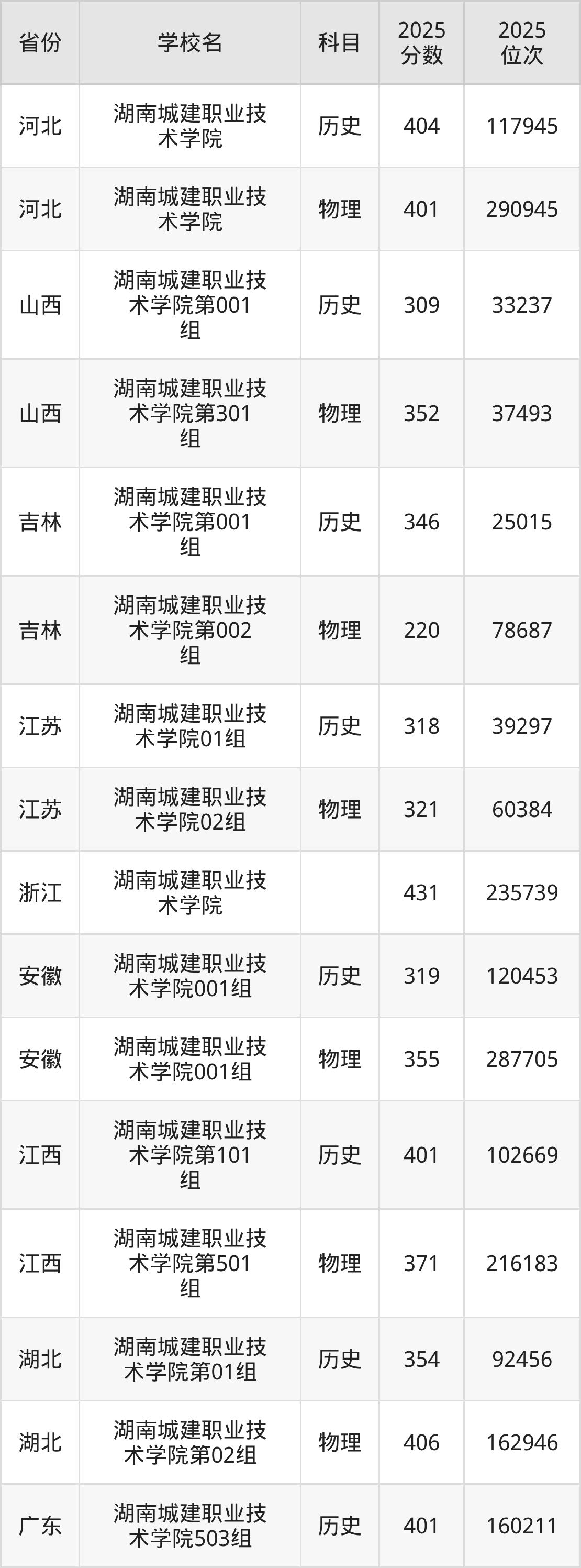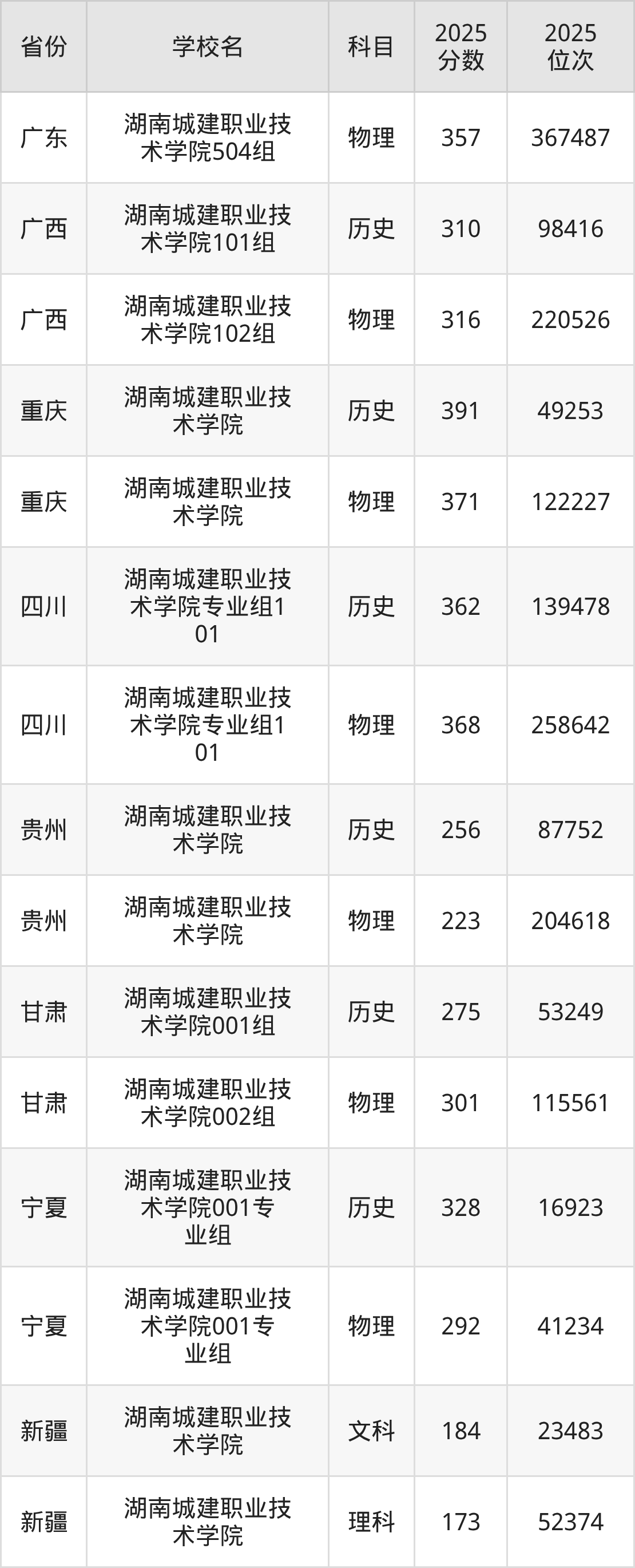 下面是湖南城建职业技术学院2025年录取分数线各省汇总,一起来了解下吧。