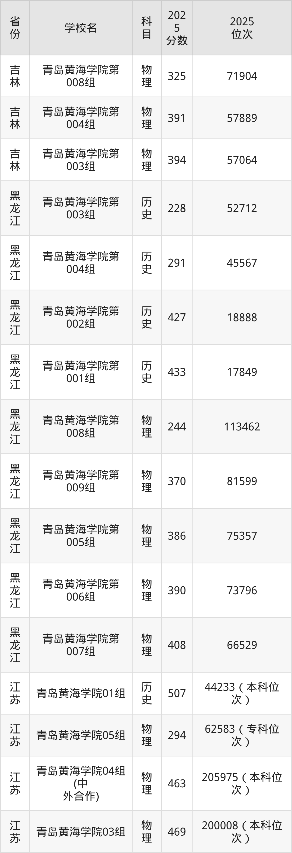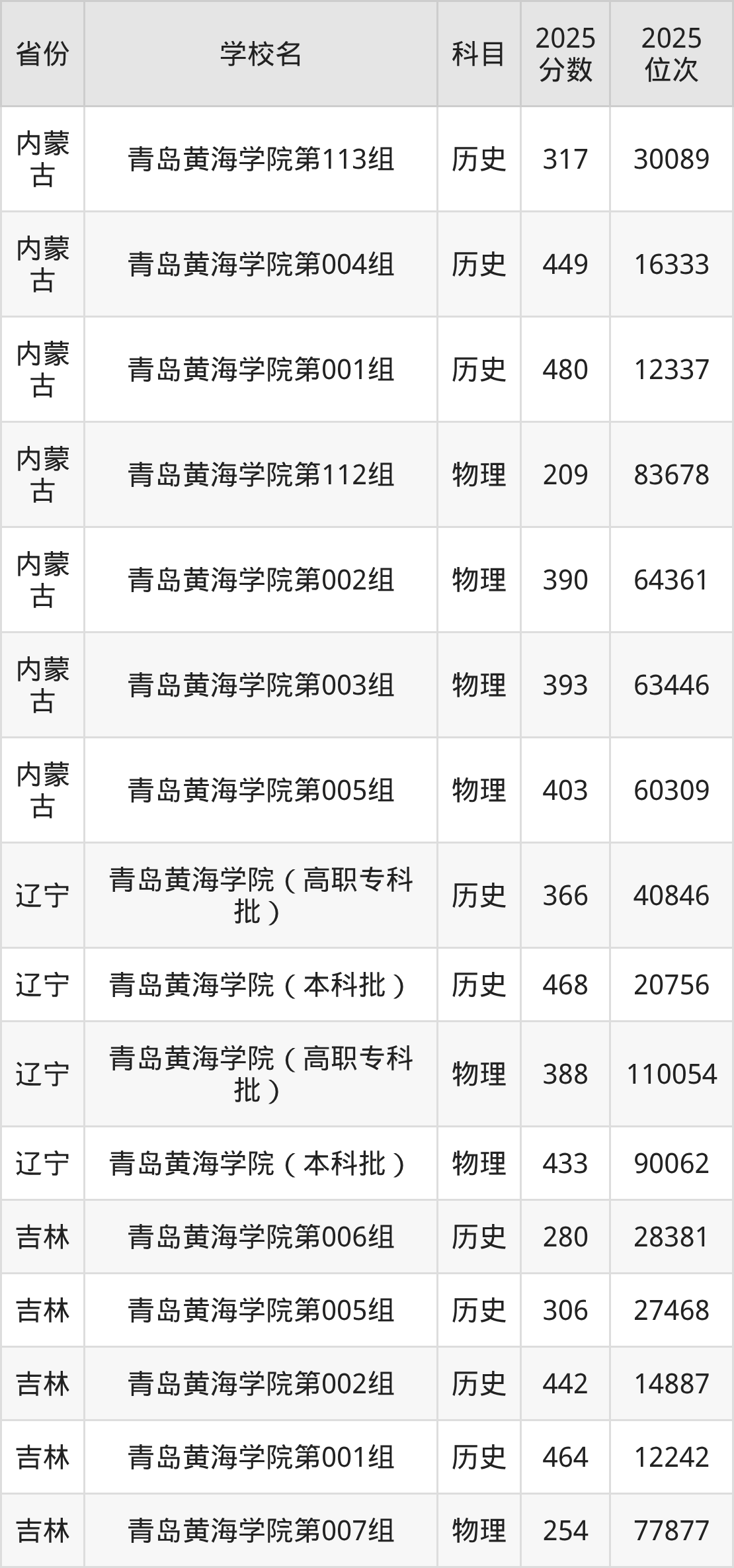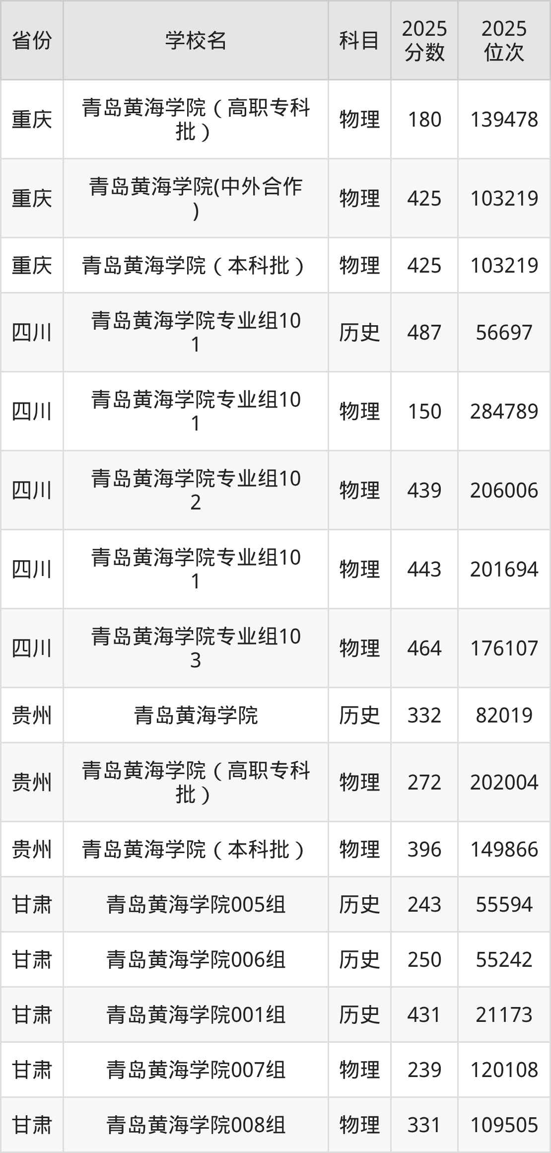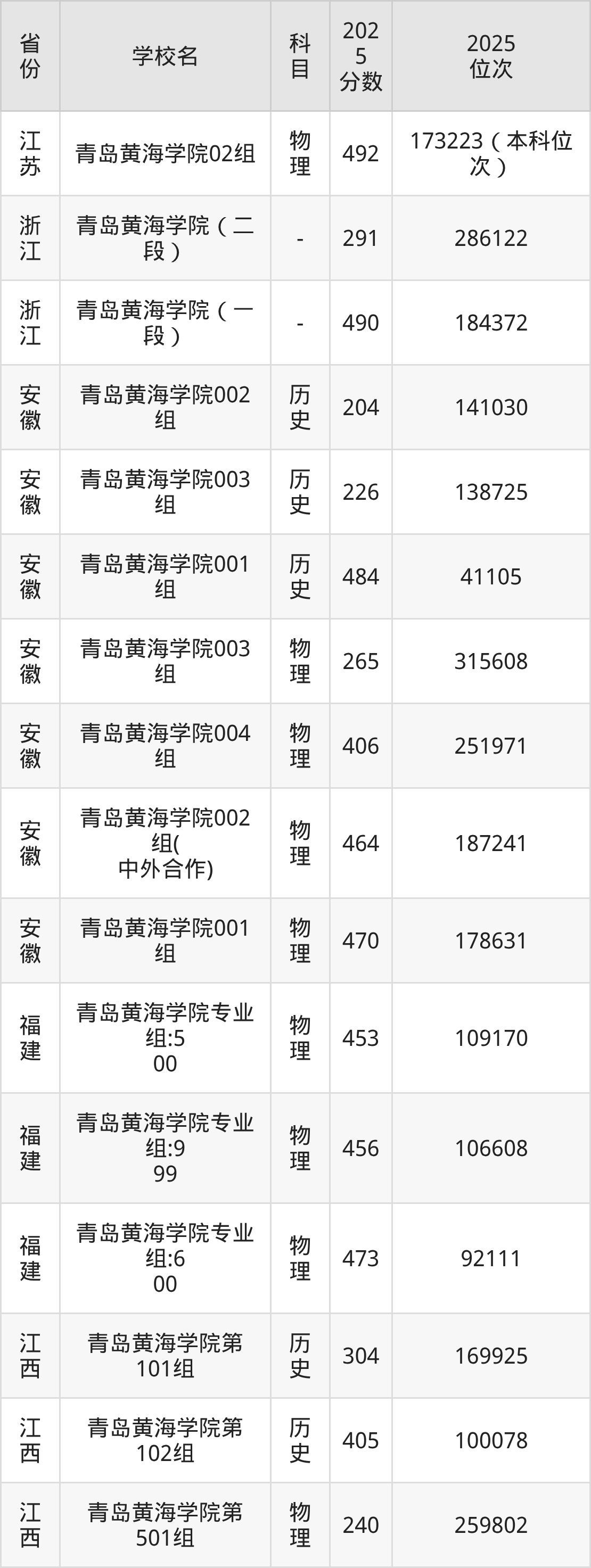 2025年青岛黄海学院在省外录取分数线范围整体位于149分到543分之间,录取分数线最低在新疆理科、录取分数线最高在海南(专业组01)。