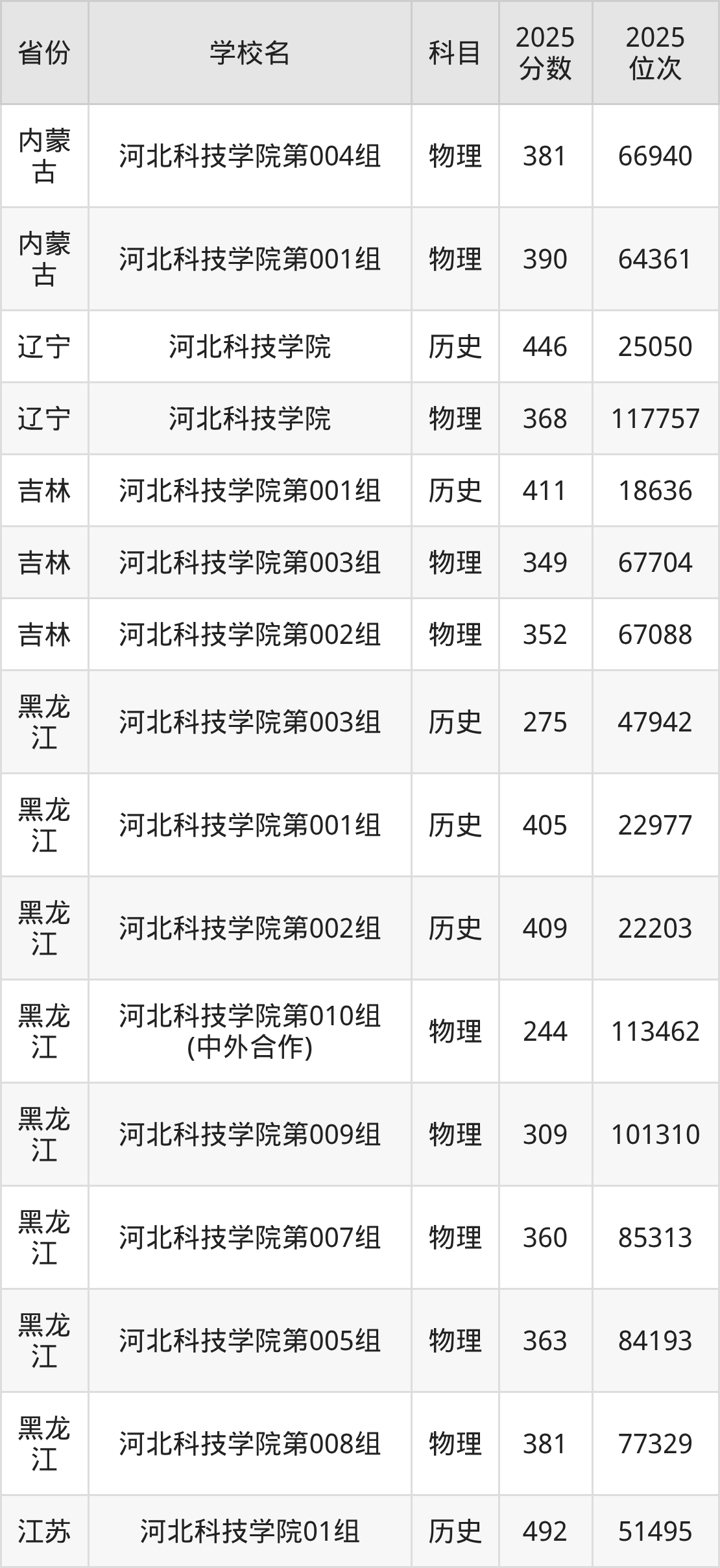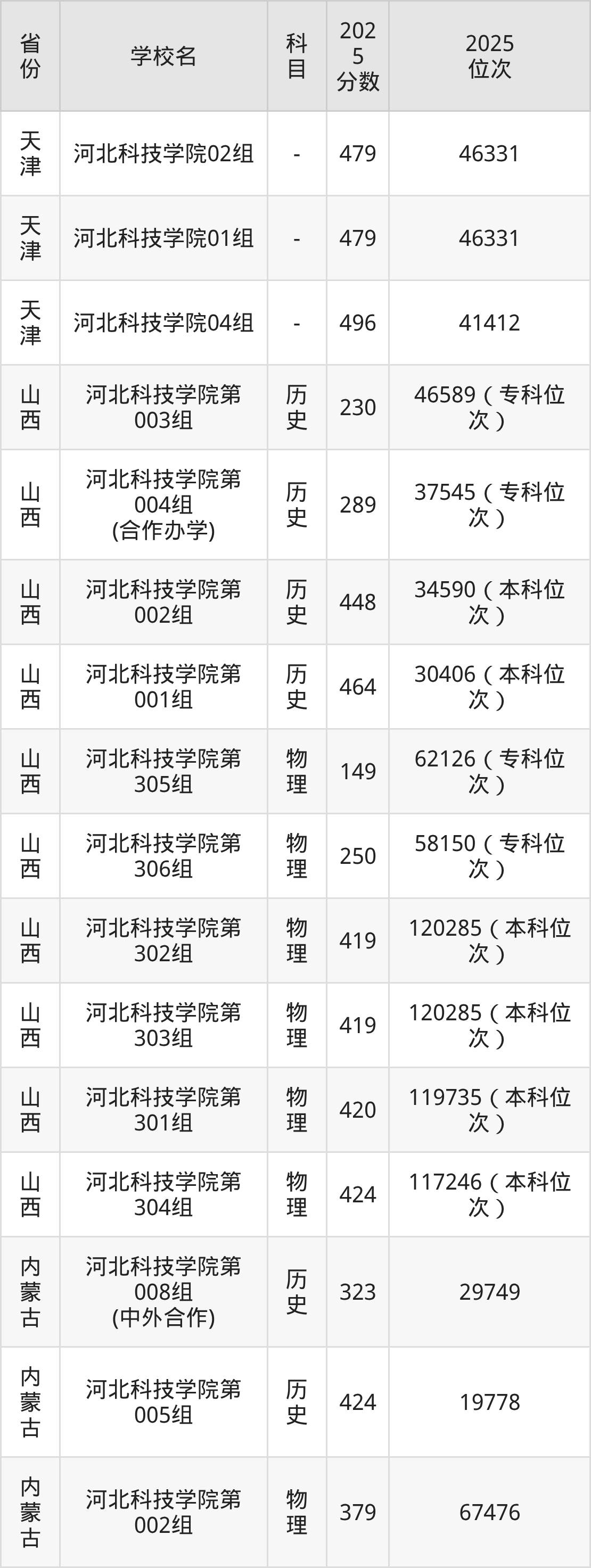 | 河北科技学院( 本科批) | 历史 | 477 | 64897 |