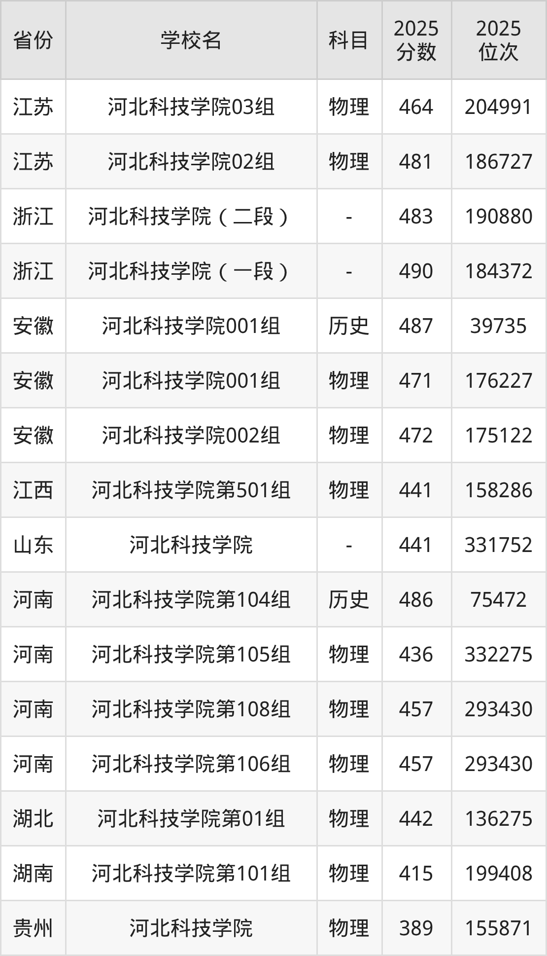 下面是河北科技学院2025年录取分数线各省汇总,一起来了解下吧。