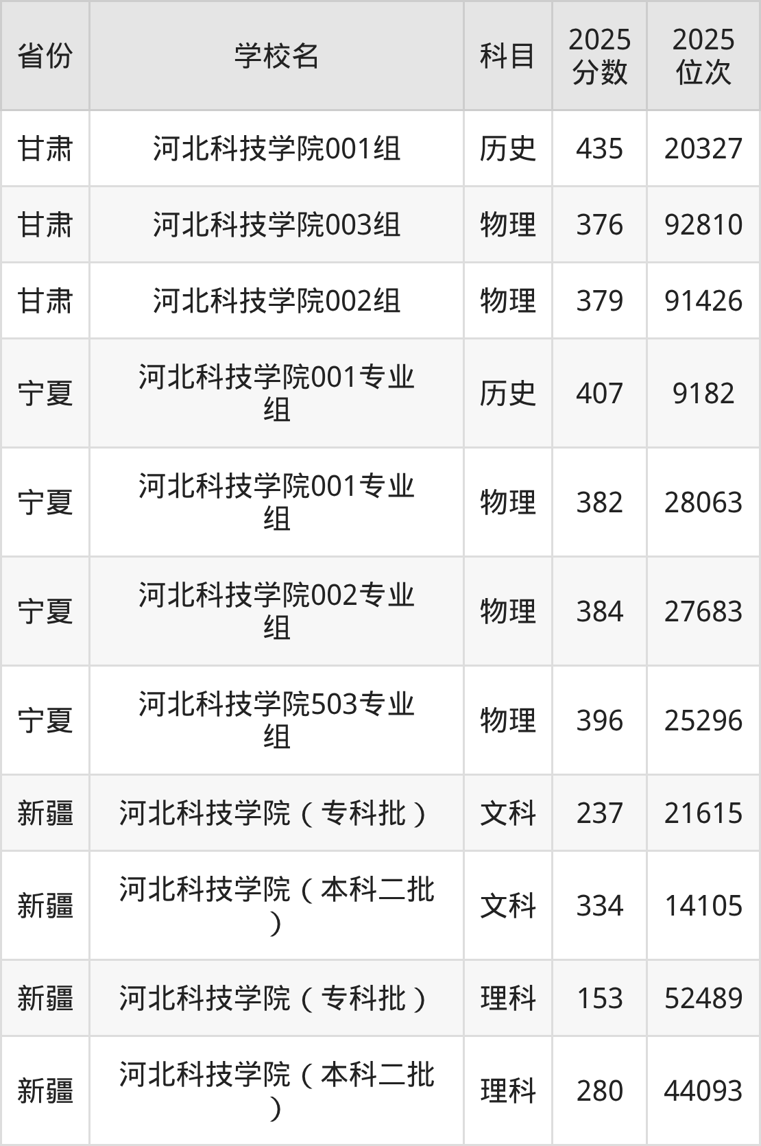 | 河北科技学院( 专科批) | 历史 | 291 | 199806 |