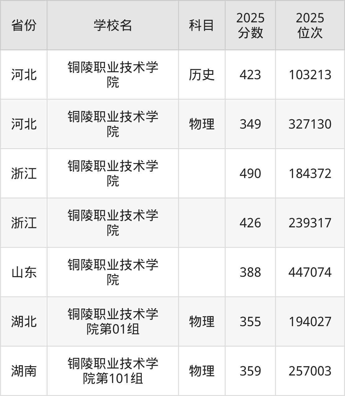 下面是铜陵职业技术学院2025年录取分数线各省汇总,一起来了解下吧。