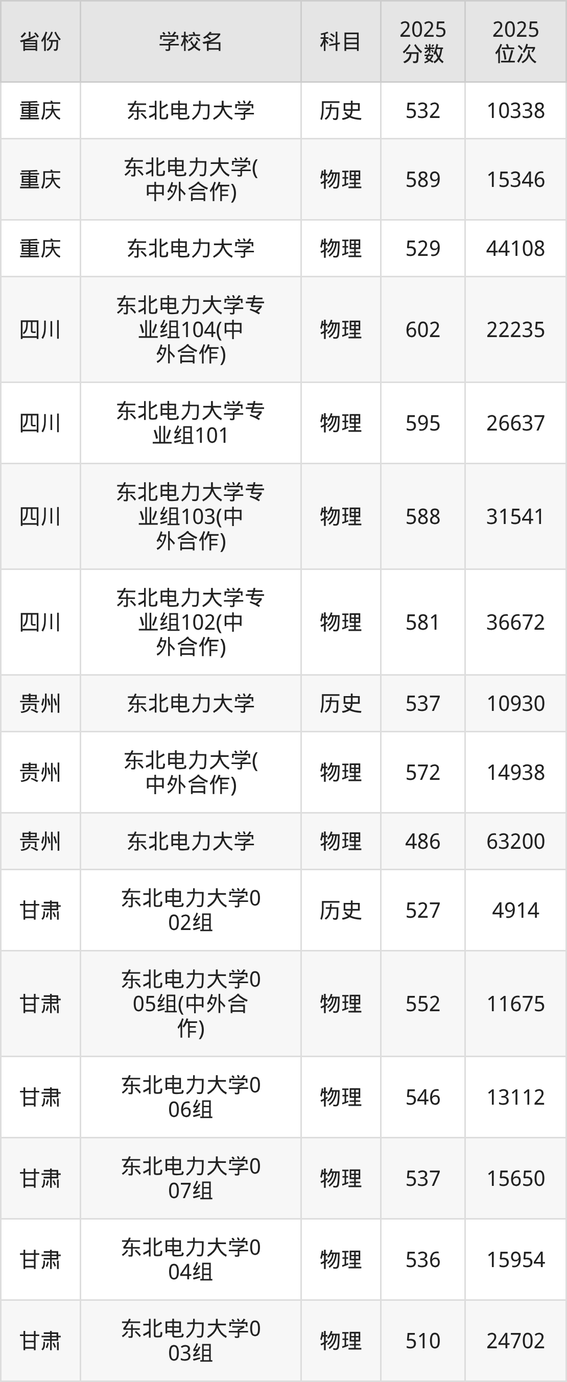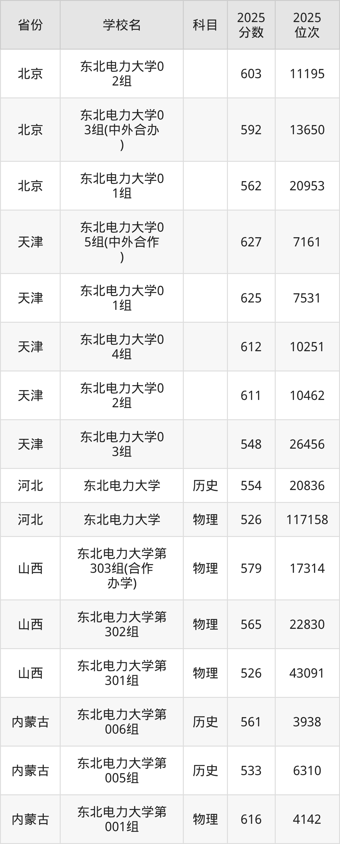 下面是东北电力大学2025年录取分数线各省汇总,一起来了解下吧。
