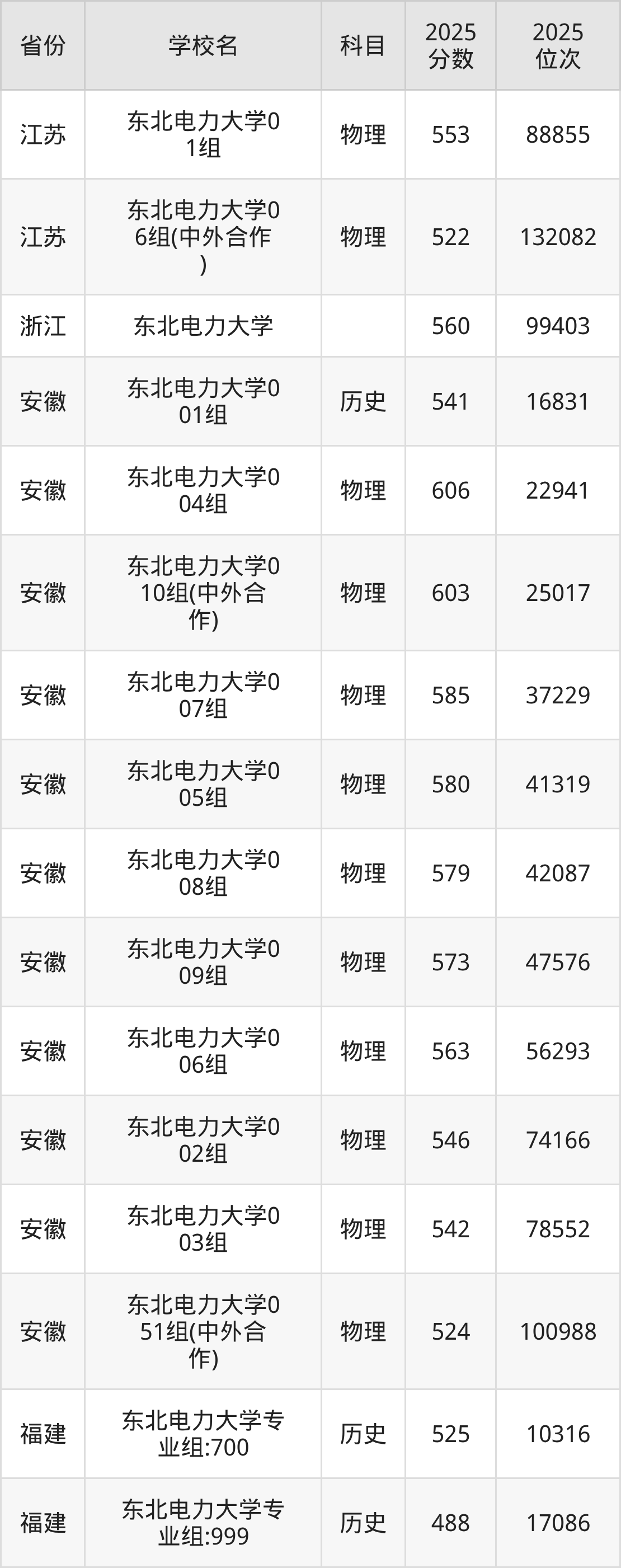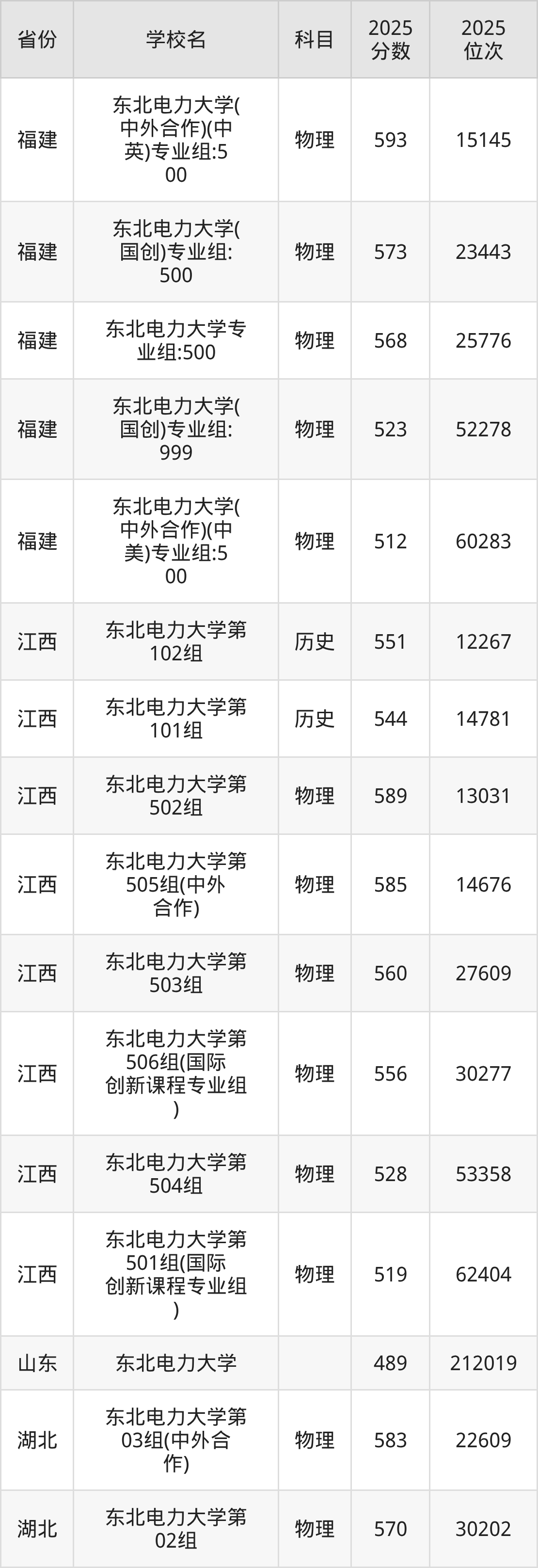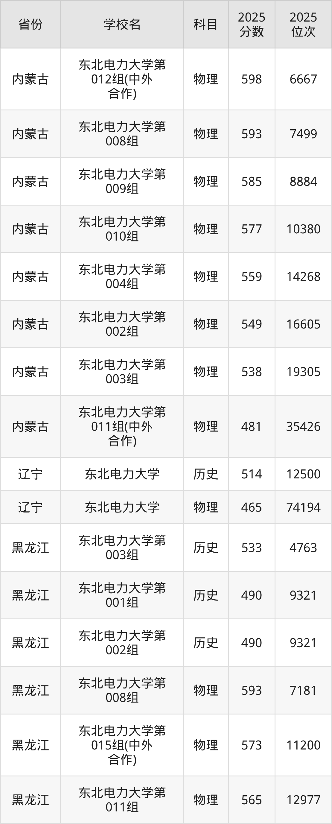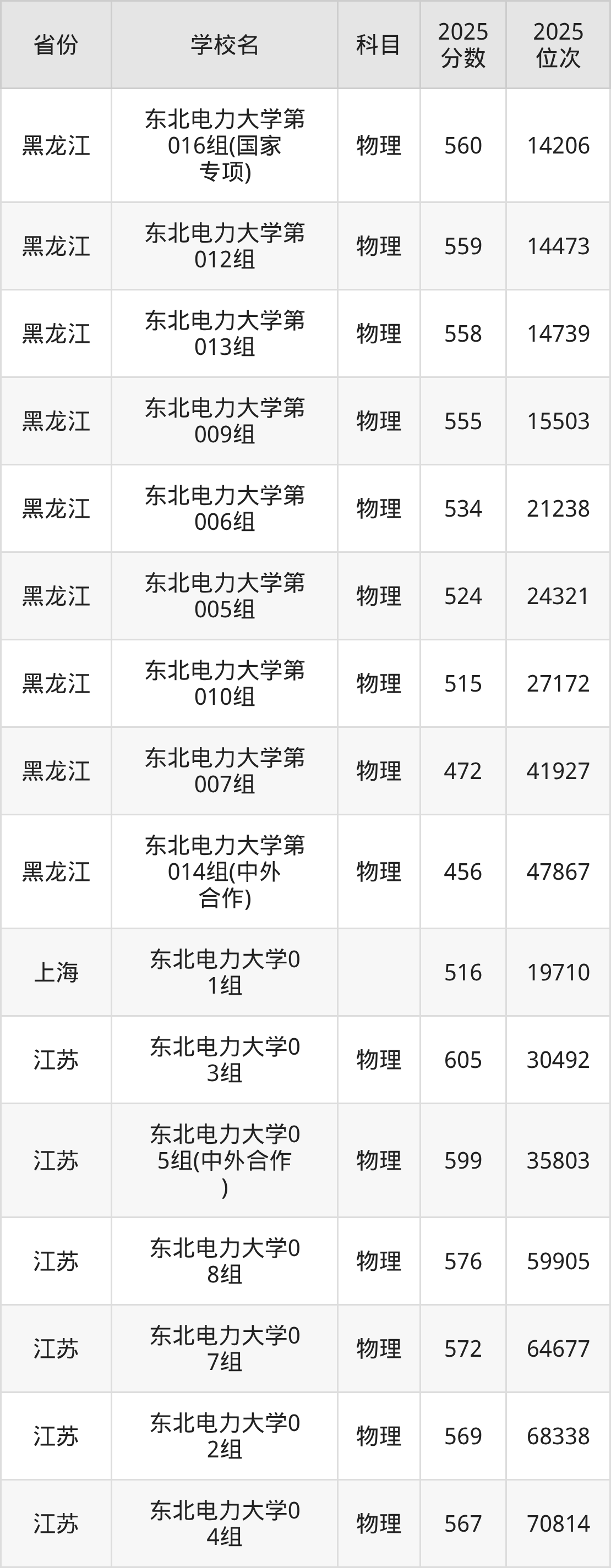 | 东北电力大学第 019组(国家 专项) | 物理 | 500 | 26306 |