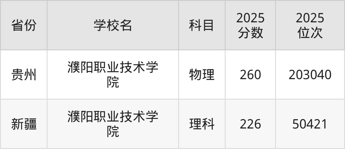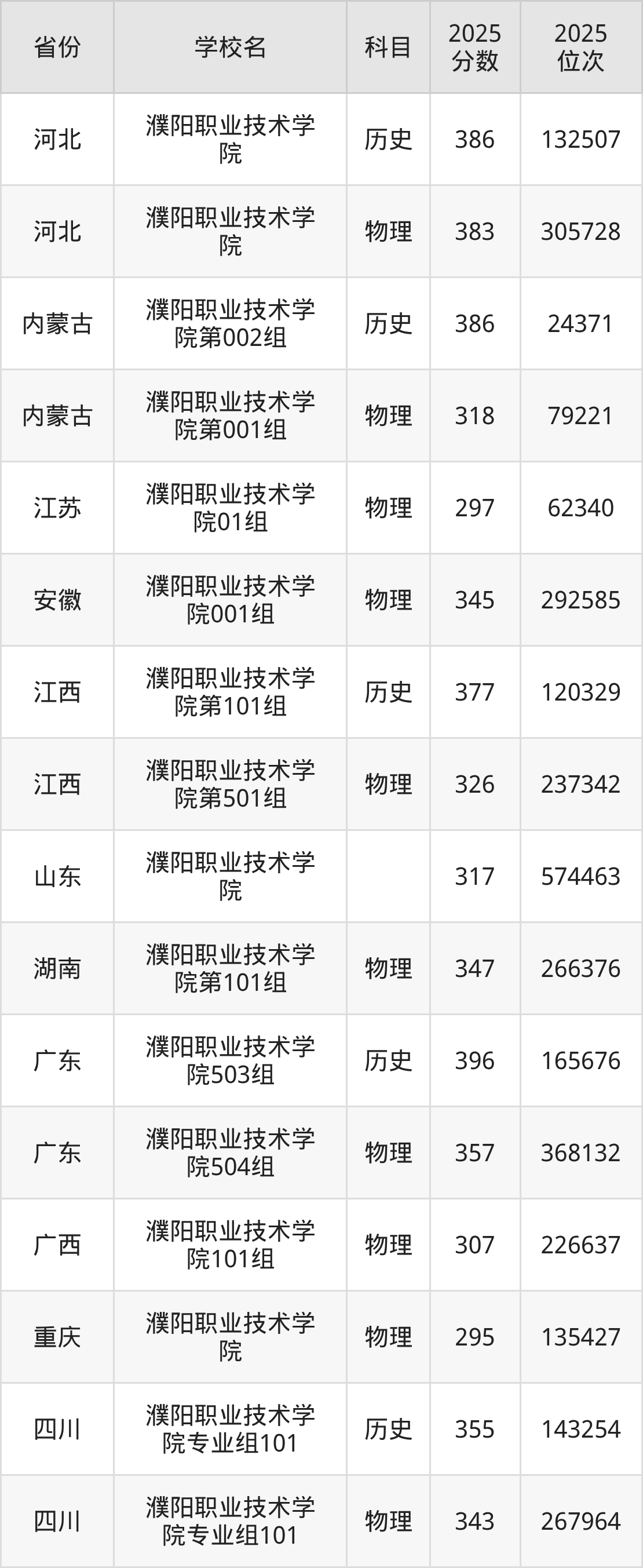 下面是濮阳职业技术学院2025年录取分数线各省汇总,一起来了解下吧。