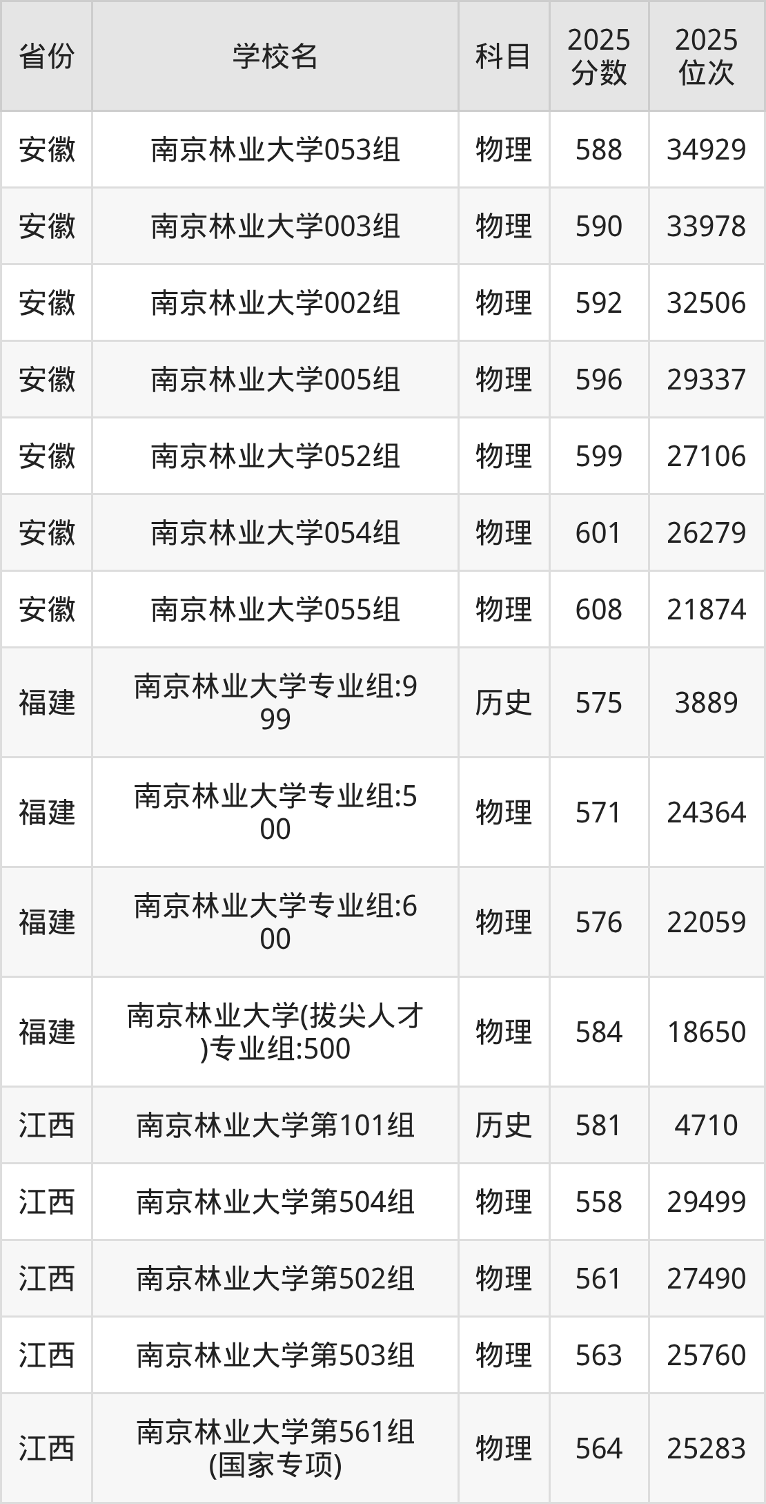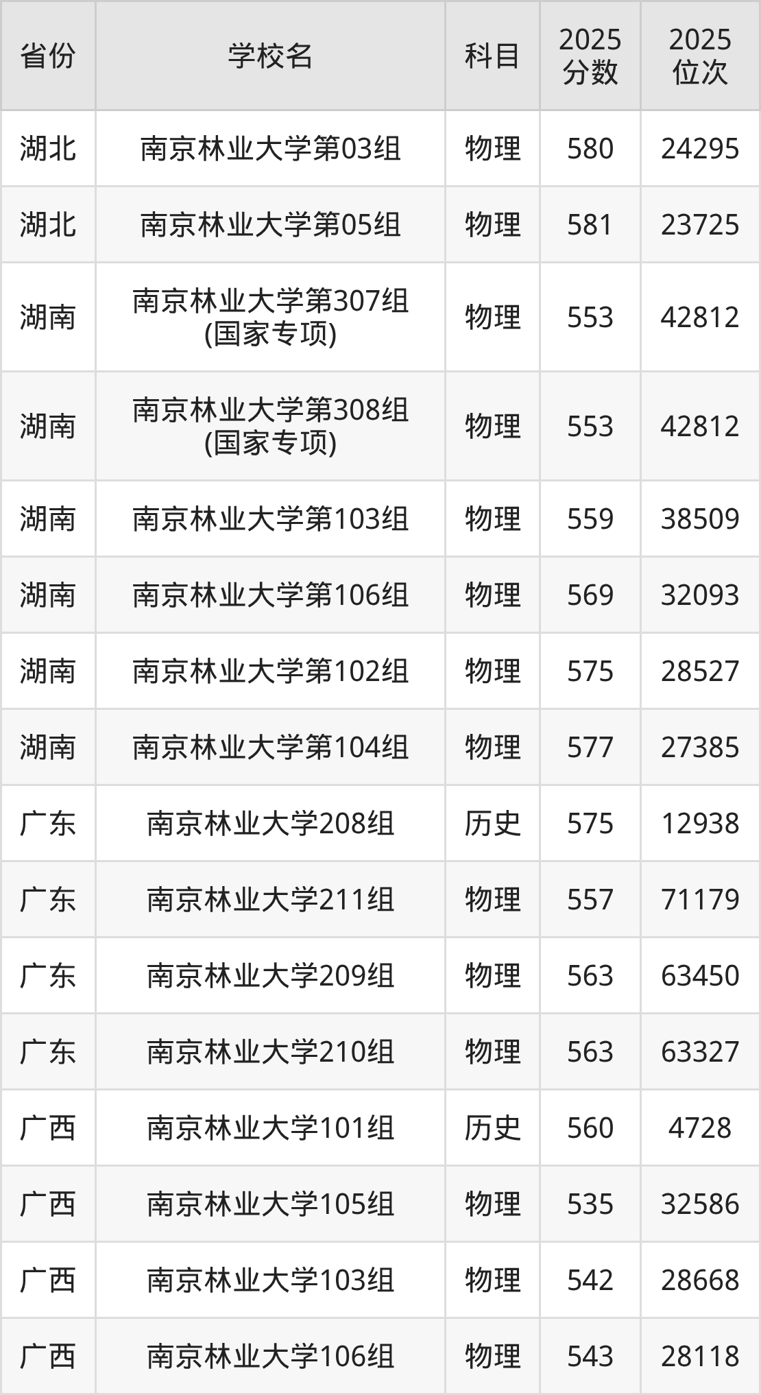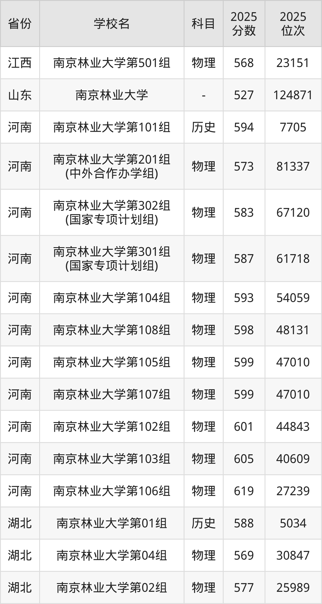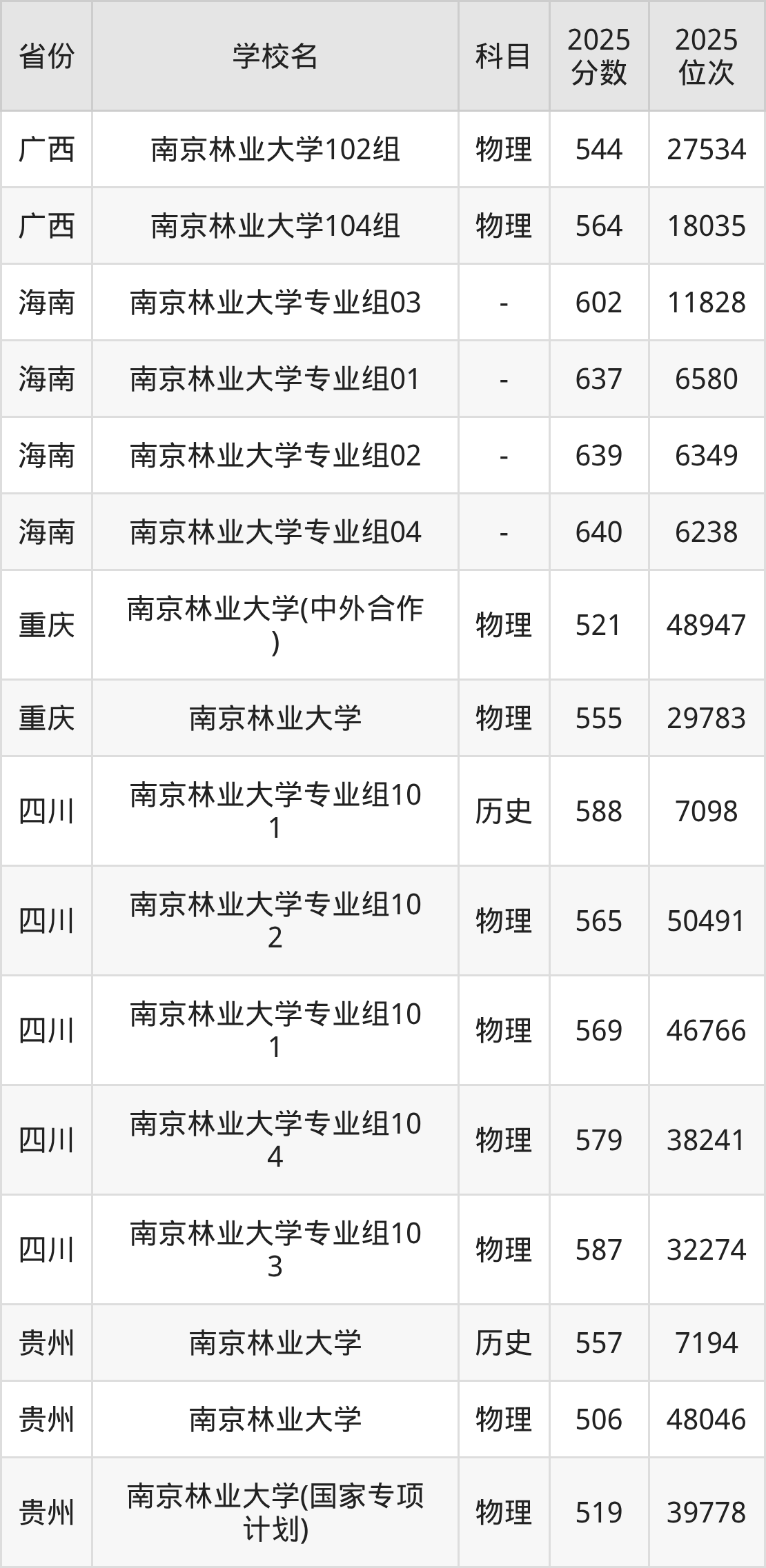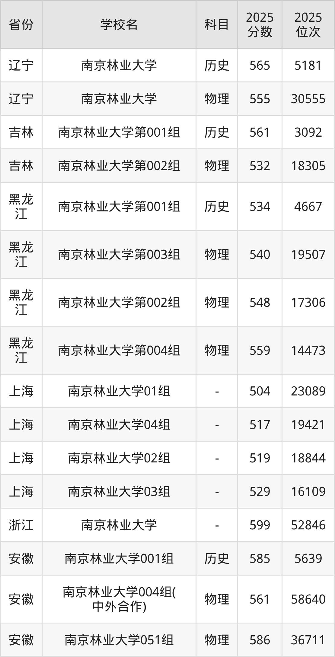 2025年南京林业大学历史类最低分573分(14117名)、物理类最低分527分(125021名)。